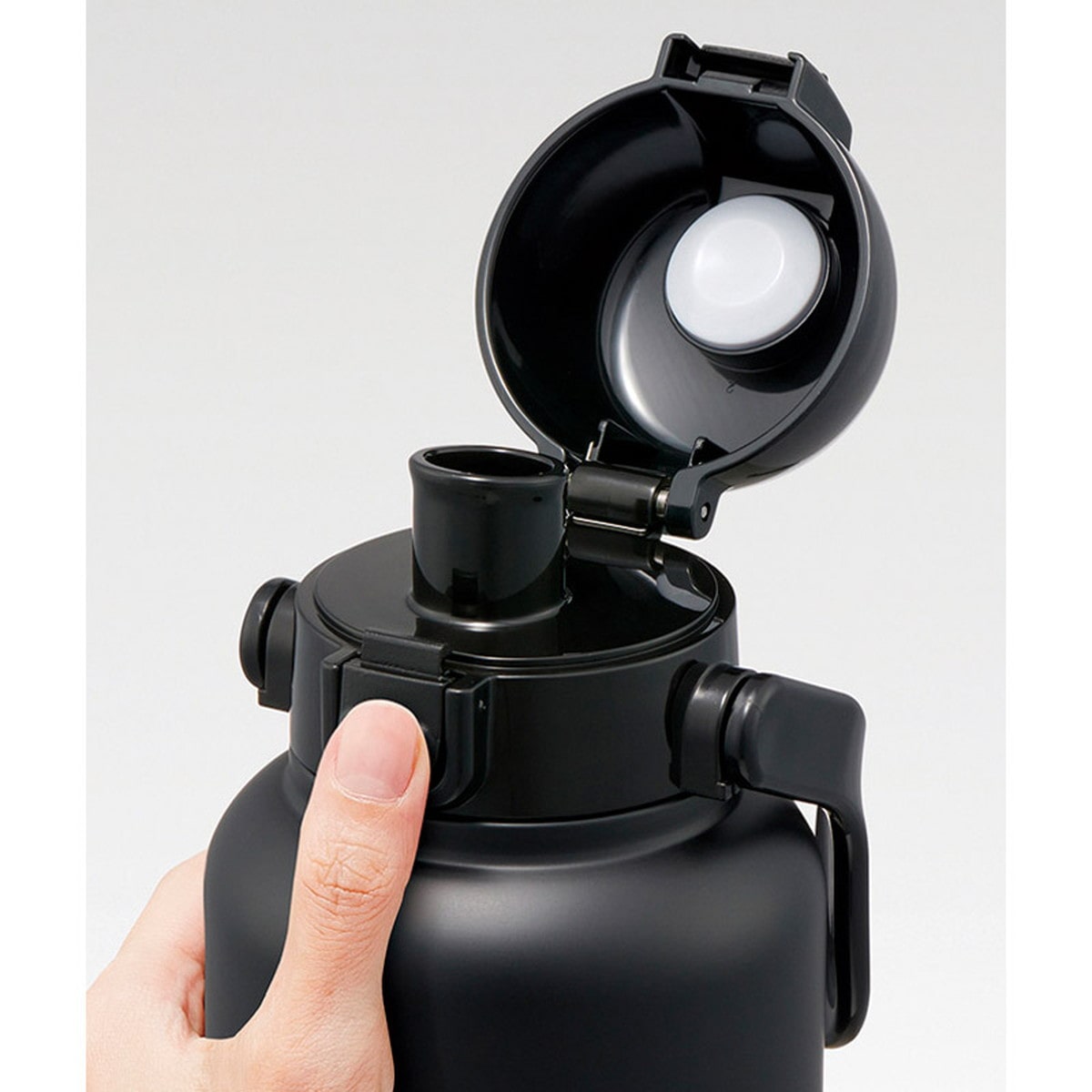 「ハンドル付ダイレクトボトル 1.5リットル ブラック STD15H」 ハンドル付きワンプッシュオープンの保冷専用ステンレスダイレクトボトル。持ち運びに便利で飲みたい時に。