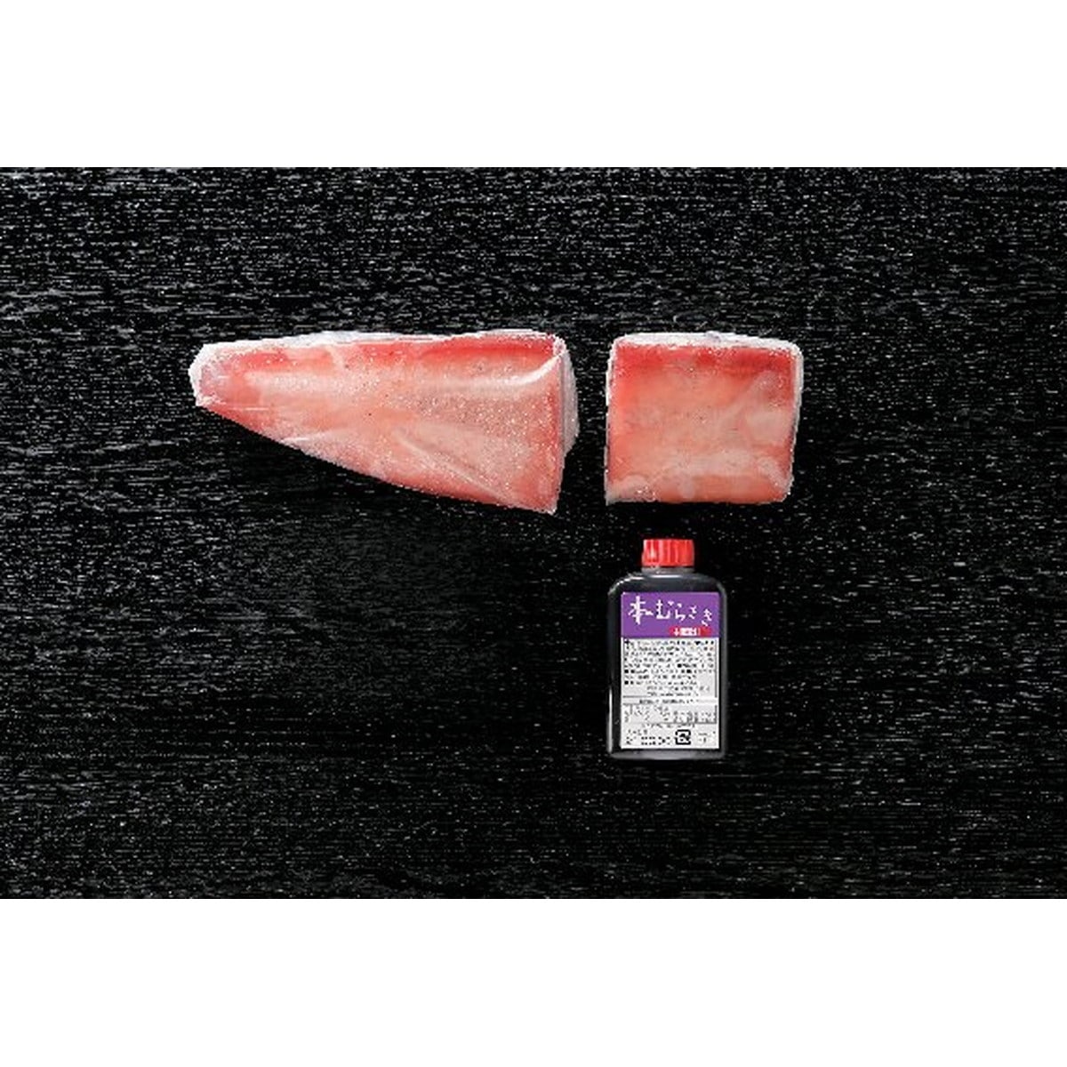 「鹿児島県枕崎産 一本釣り鰹刺身用 400g、醤油」 一本釣した鰹を船上で急速凍結しました。