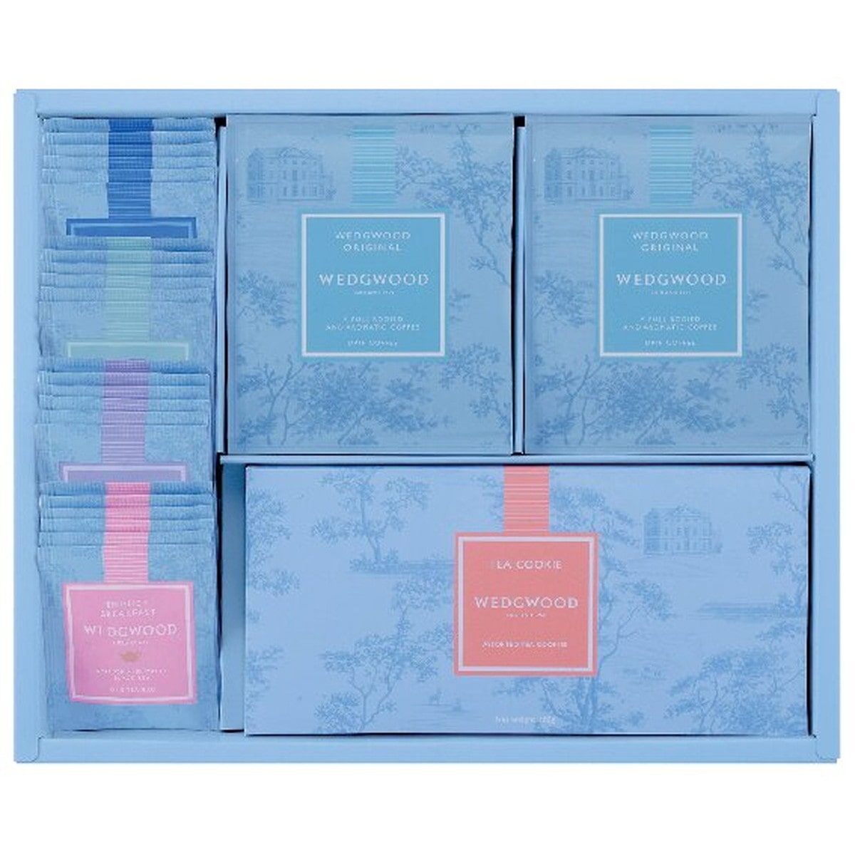 「シグニチャー アソート」 『ウェッジウッド』の味わいが詰まったアソートセット。この1セットで気軽にブレイクタイムが楽しめる紅茶・コーヒー・茶葉入りクッキーが入ったセットです。