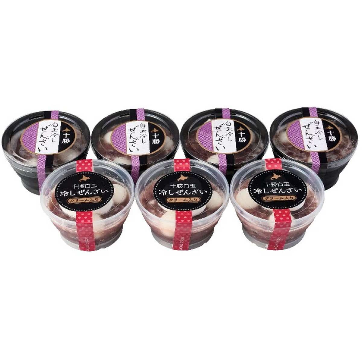 ●数量・内容:十勝白玉冷やしぜんざい120g×4、十勝白玉冷やしぜんざい(クリーム入)120g×3