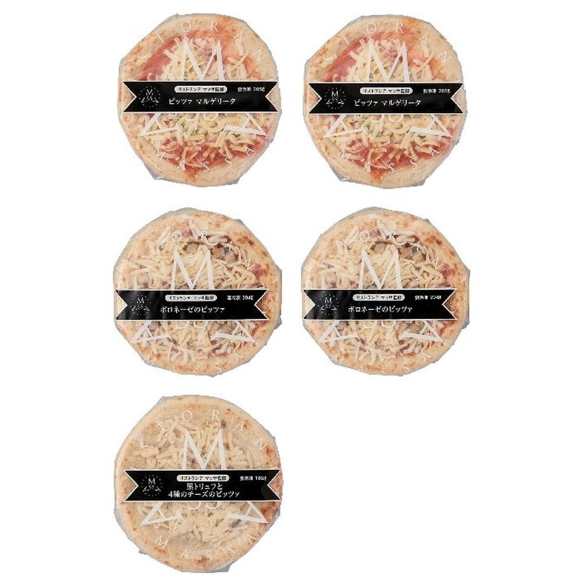 ●数量・内容:ピッツァマルゲリータ205g・ボロネーゼピッツァ204g×各2、黒トリュフと4種のチーズのピッツァ185g×1