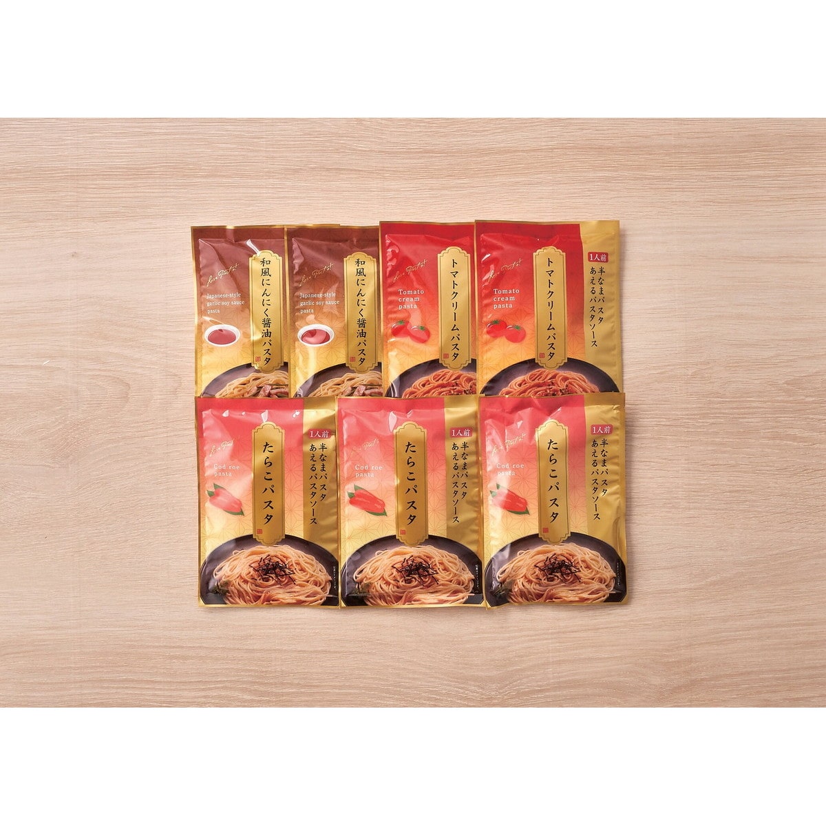 ●数量・内容:和風にんにく醤油パスタ(麺100g、ソース30g)×2、トマトクリームパスタ(麺100g、ソース28g)×2、たらこパスタ(麺100g、ソース30g)×3