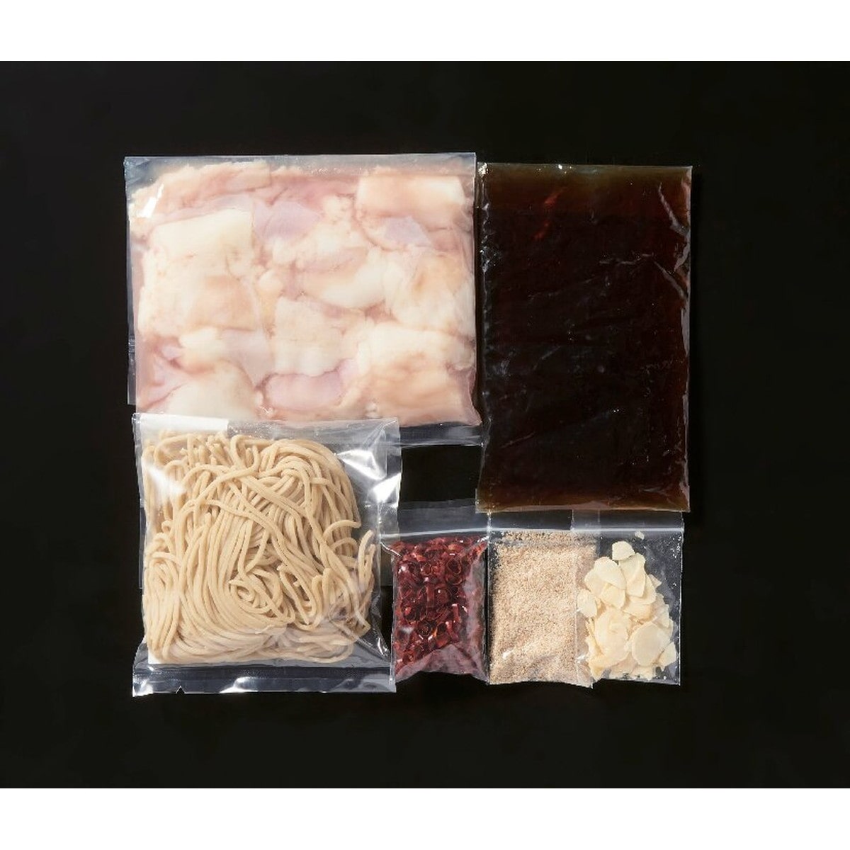 ●数量・内容:もつ鍋セット(和牛もつ200g、もつ鍋スープ135g、薬味(ガーリックスライス・輪切り唐辛子・白ごま各5g)、ちゃんぽん生麺90g)