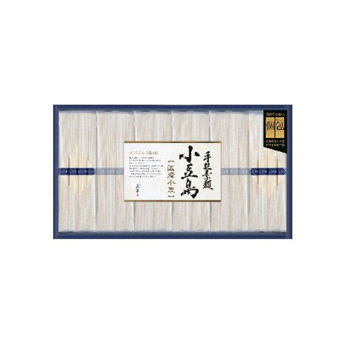 「小豆島手延素麺」 北海道産小麦を100%使用した手延べそうめんです。手延べならではの熟成で生まれた強いコシと滑らかなのど越しがご堪能いただけます。