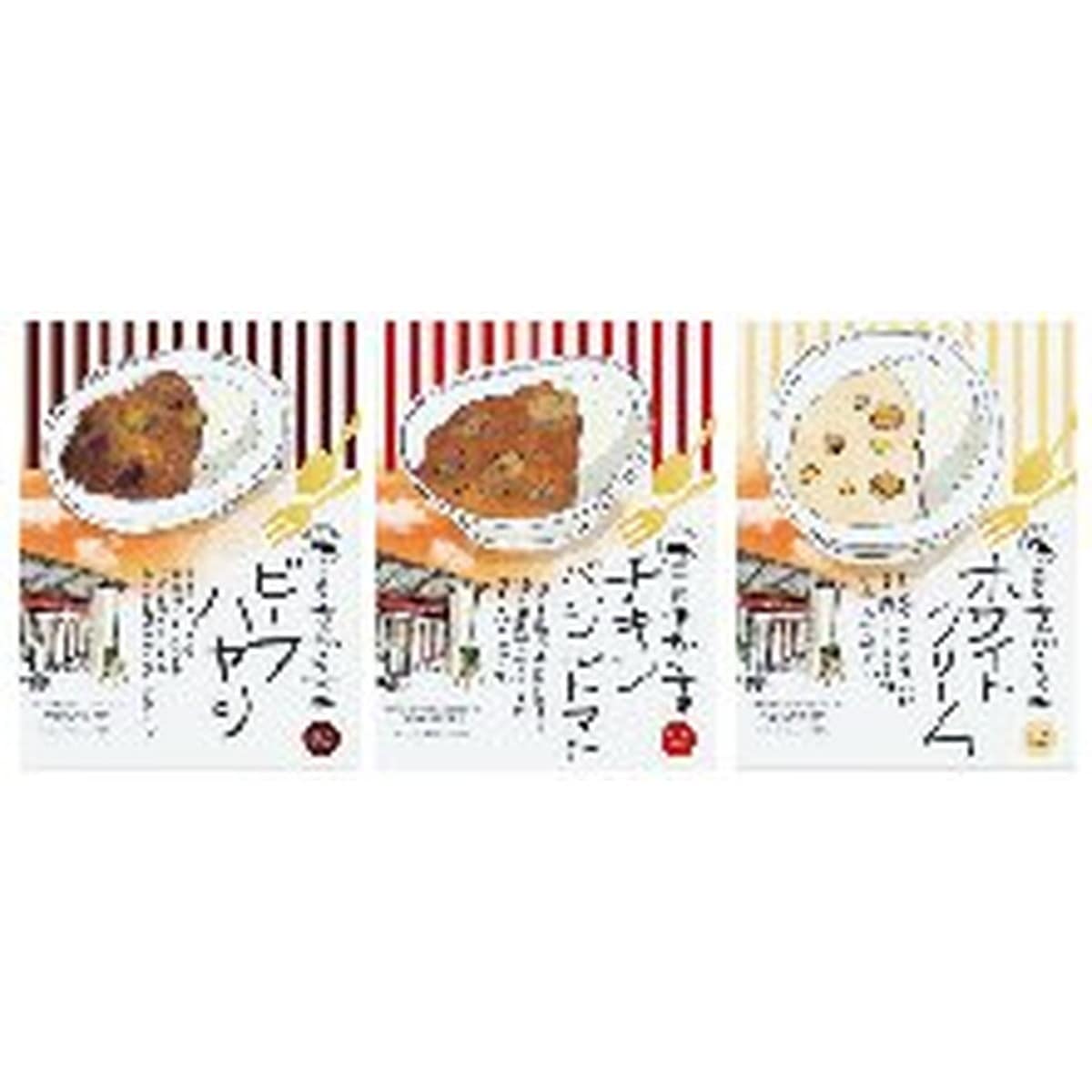 ●数量・内容:ビーフハヤシ・チキンバジルトマト・ホワイトクリーム各200g