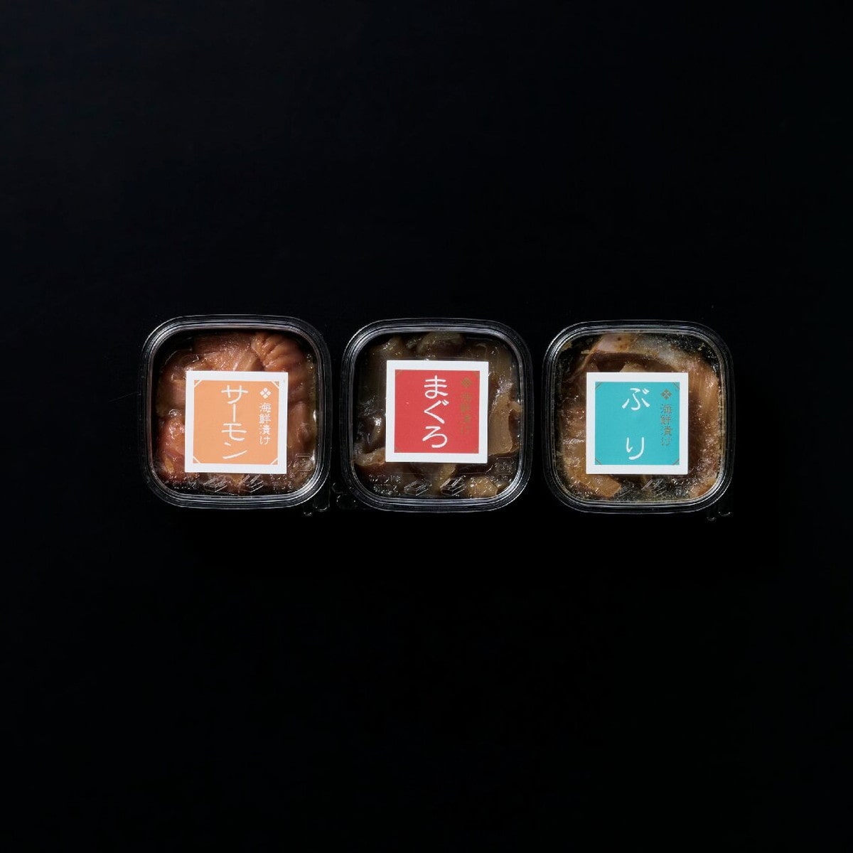 ●数量・内容:海鮮漬け(ふくいサーモン・まぐろ・ぶり)各60g