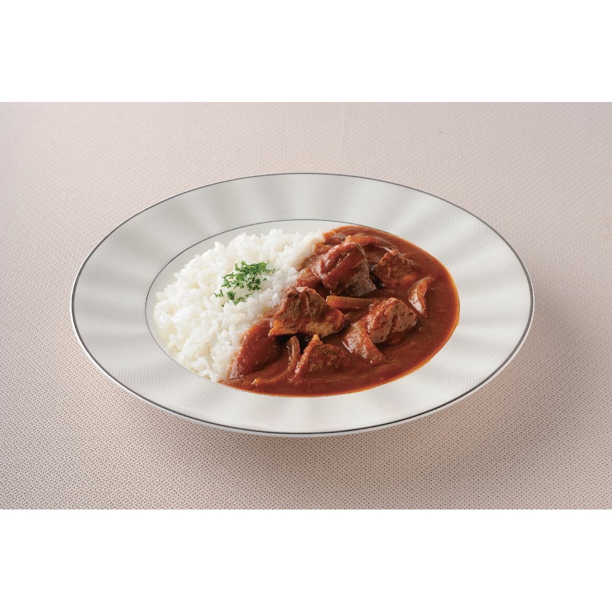 「<ホテルオークラ>黒毛和牛ハッシュドビーフ」 トマトの風味をきかせたデミグラスソースにソテーした玉葱の甘み、黒毛和牛の素材の旨みをお楽しみいただける上品な仕上がりのハッシュドビーフです。