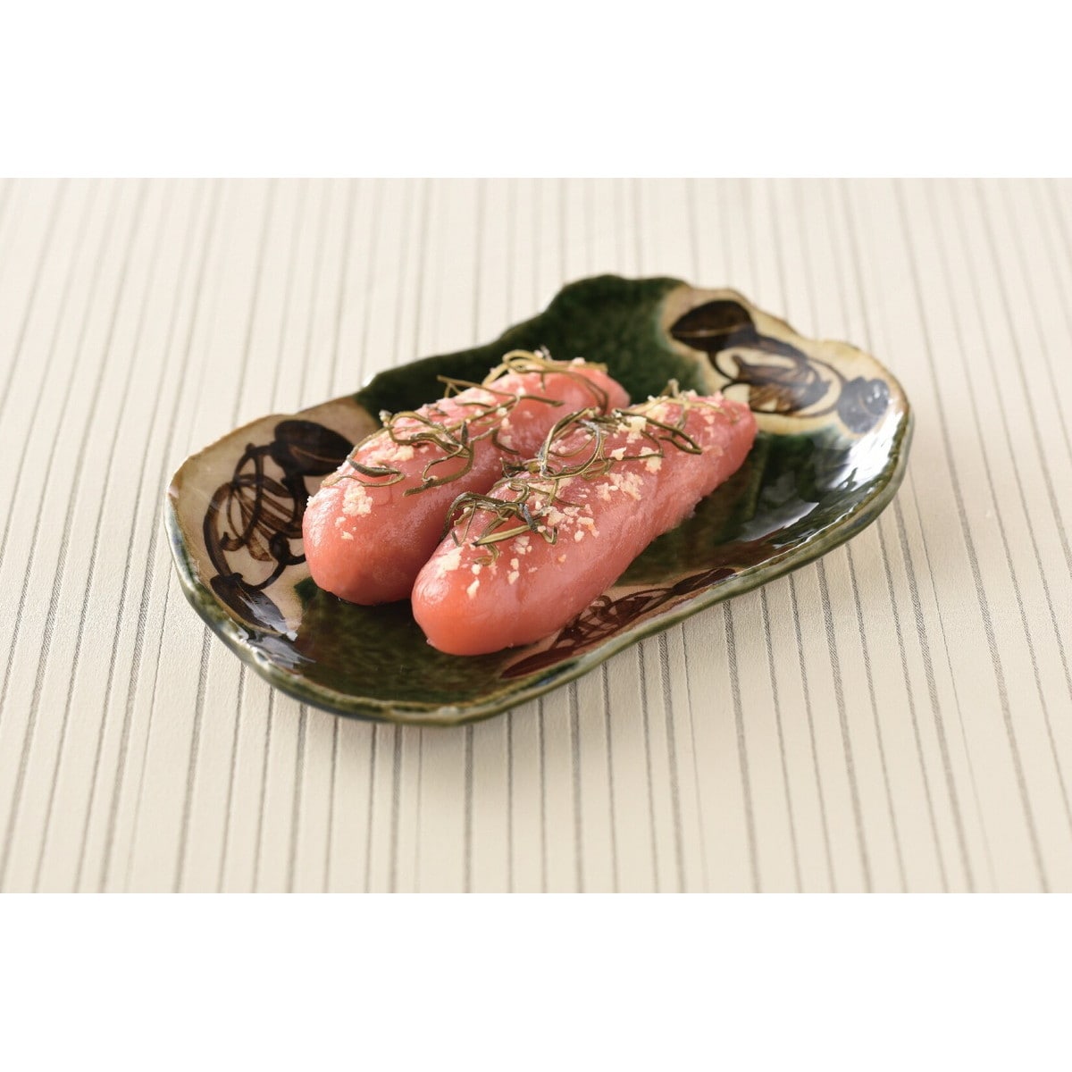 「北海道産山わさびたらこ」 粒がしっかりとした真子をやわらかな味わいに調味し、北海道産の山わさびで漬け込みました。