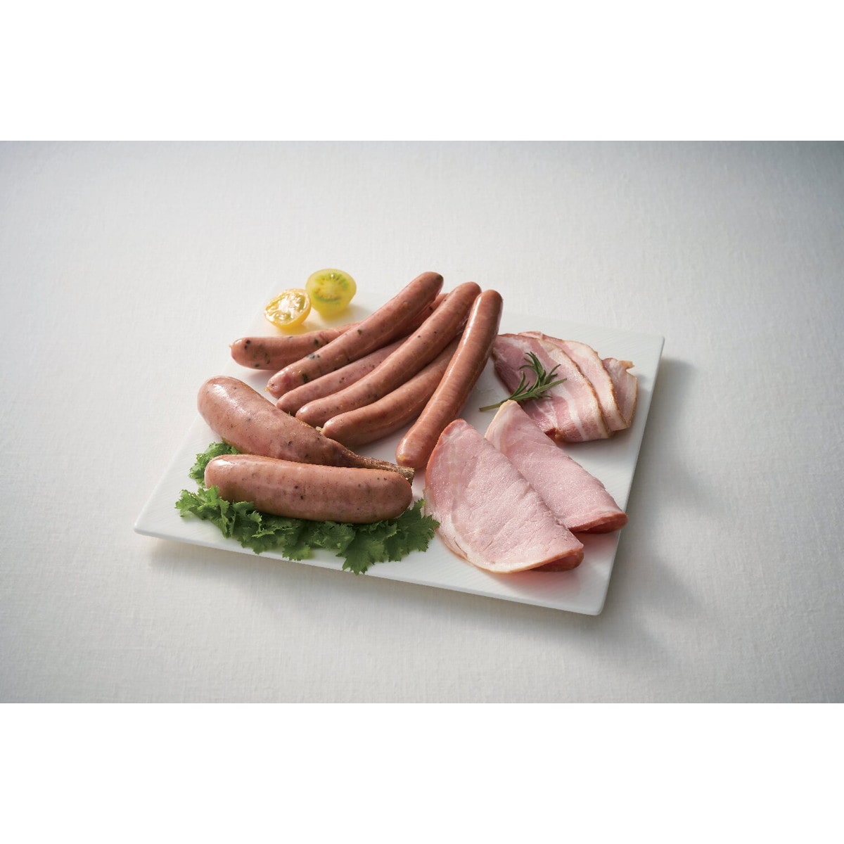 ●数量・内容:骨付ソーセージ180g、荒挽フランク150g、荒挽ウィンナー120g、ピルカウインナー120g、オニオンウインナー120g、炭火焼ベーコン80g、スティッククラコウ80g、燻しロースハム60g