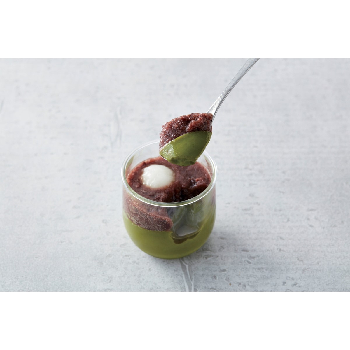 「十勝小豆抹茶プリン」 十勝橋本牧場の生乳と宇治抹茶を使用した抹茶プリンに、十勝産小豆を使用した粒餡を乗せました。アクセントの白玉の食感もお楽しみください。