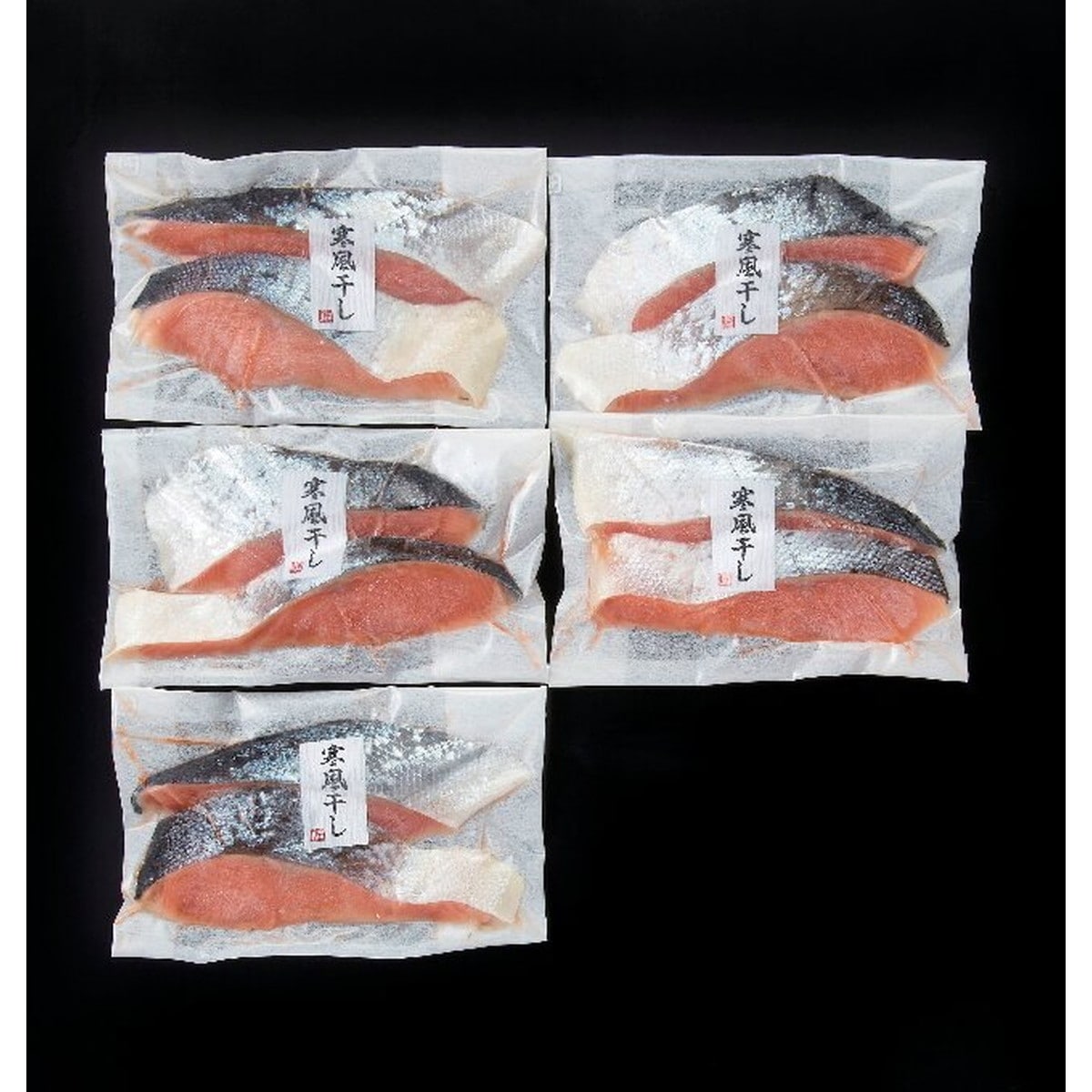 「美銀サーモン寒風干切身(中辛) 110g×5」 採卵から成魚になるまでしっかりと品質管理されて育てられた「美銀サーモン」を低温熟成させて旨みを引き出しました。