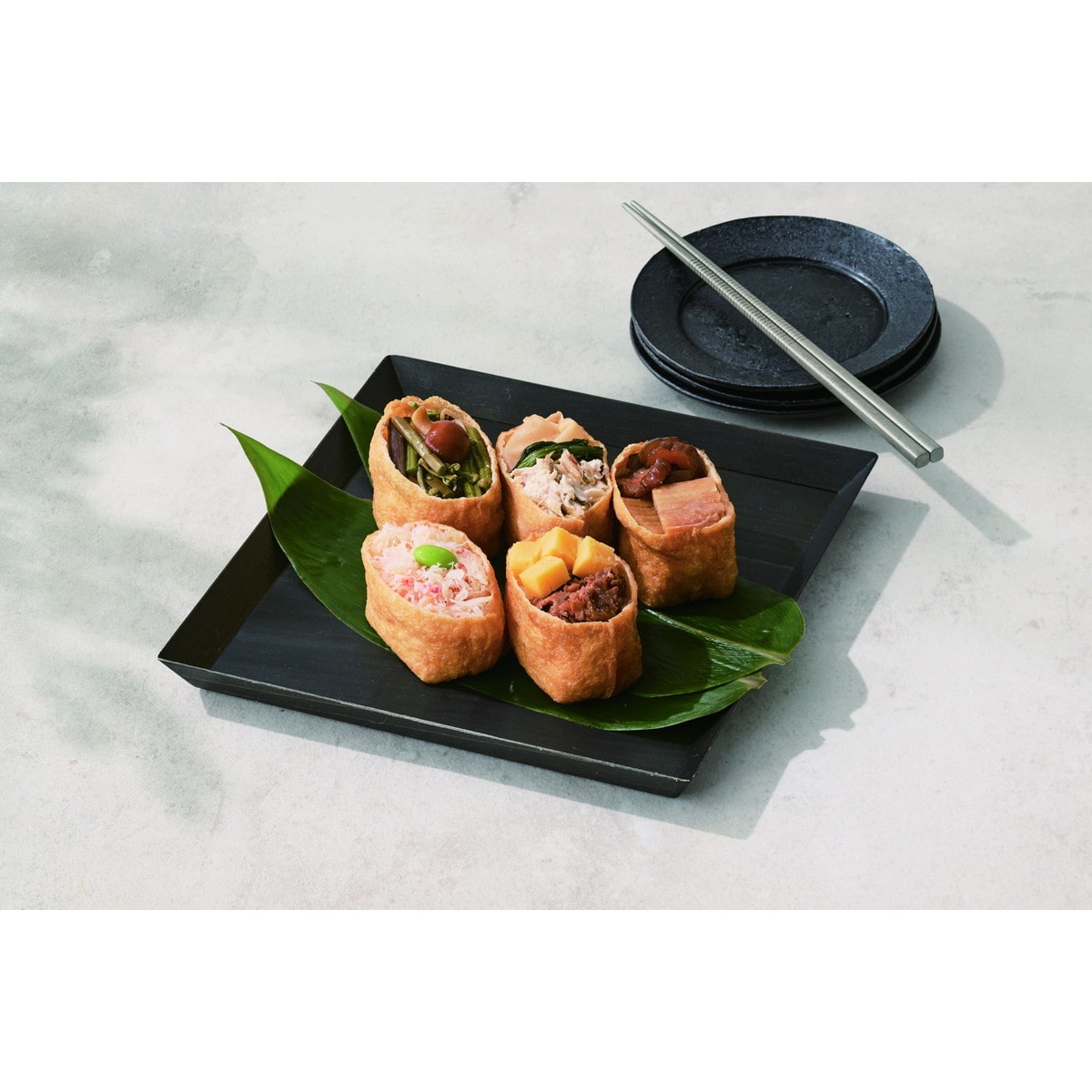 「贅沢いなり寿司詰合せ」 牛肉やズワイガニなどの贅沢な具材をのせた、バラエティー豊かないなり寿司の詰合わせです。