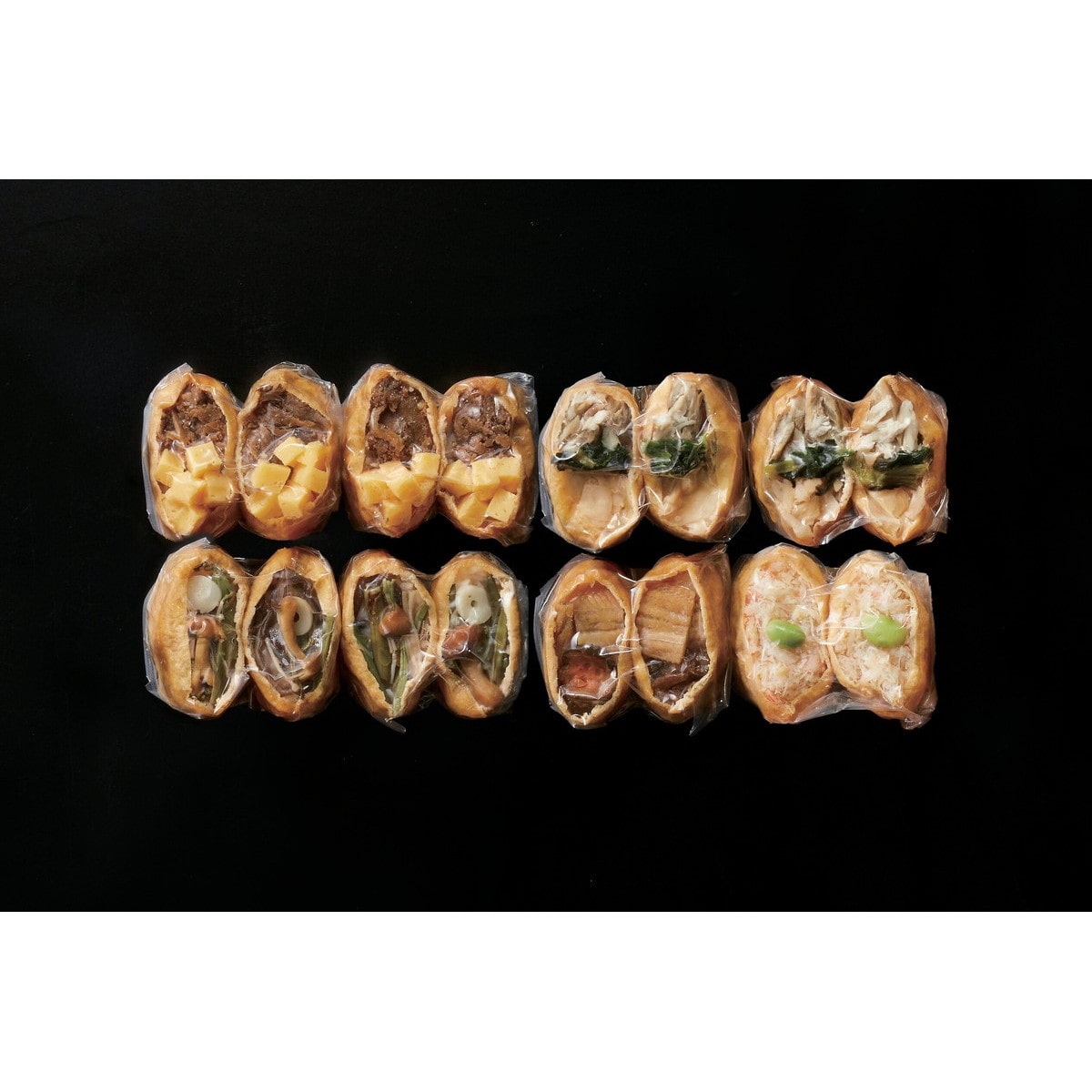 ●数量・内容:牛しぐれいなり・焼き鯖いなり・山菜いなり各2個入×2、穴子いなり・ズワイガニいなり各2個入