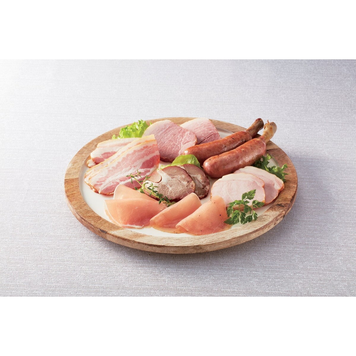●数量・内容:燻しロースハム300g、燻しモモハム300g、炭火焼焼豚200g、炭火焼ベーコン80g、骨付ソーセージ180g、生ハムロース40g、ペッパー生ハムロース40g※パッケージデザインが変更になる場合がございます。