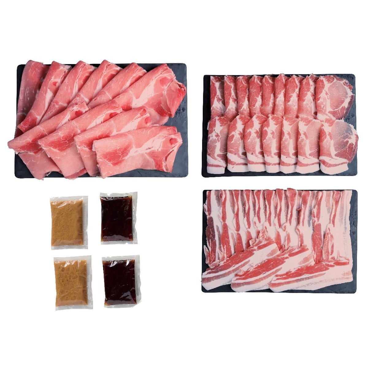 「黒豚しゃぶしゃぶ用セット モモ400 バラ・カタロース500」 「鹿児島県産黒豚」は鹿児島県産のバークシャー種であることやさつまいもを含む飼料を60日以上与えるなど厳格な基準で飼育されることで、肉質はきめ細かく独特の甘みと風味、歯切れの良い食感があります。しゃぶしゃぶ等でその旨みをお楽しみください。