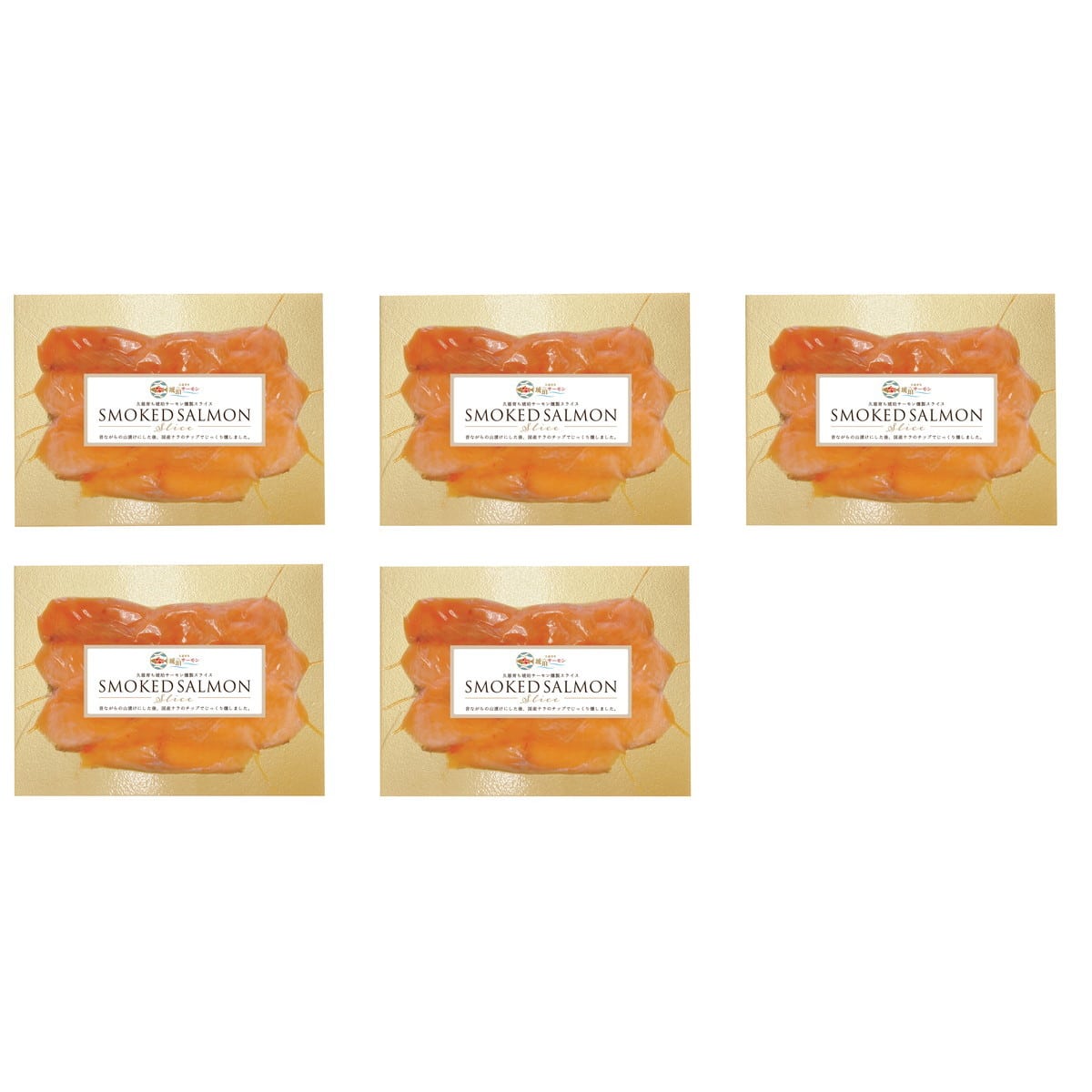 「琥珀サーモン燻製スライス(久慈育ち) 60g×5」 岩手県のブランドサーモン「久慈育ち琥珀サーモン」を昔ながらの山漬けにした後、国産ナラのチップで、じっくり燻しました。なめらかでもっちりとした食感をお楽しみいただけます。