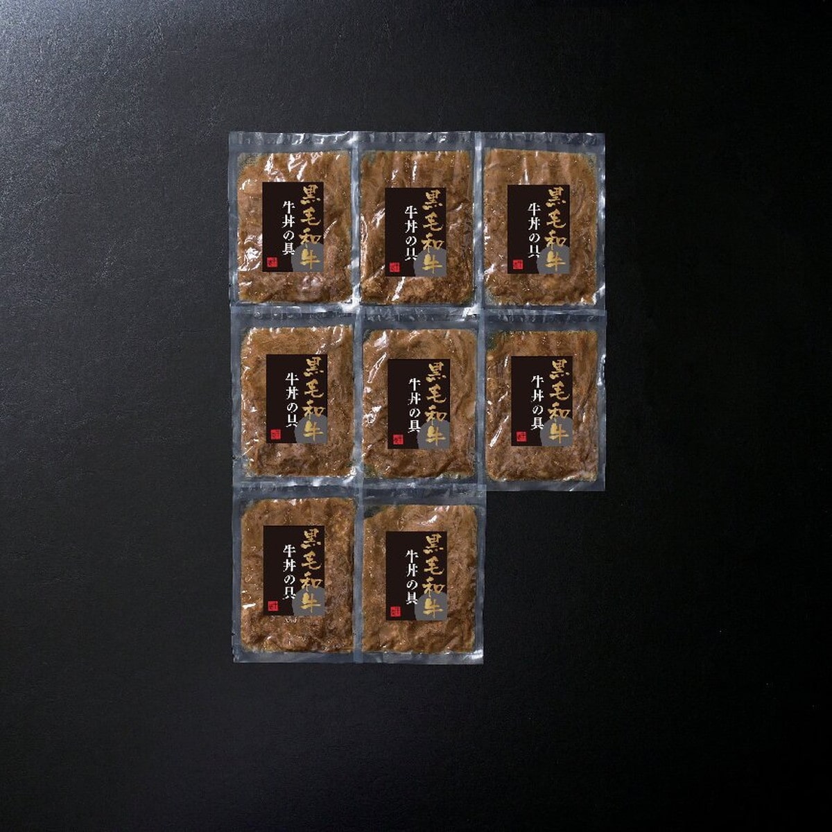 「黒毛和牛牛丼の具 100g×8」 鹿児県産島黒毛和牛原料の牛丼。口に入れた瞬間に和牛独特の甘み、風味が広がります。湯煎してご飯に乗せるだけの簡単メニューです。