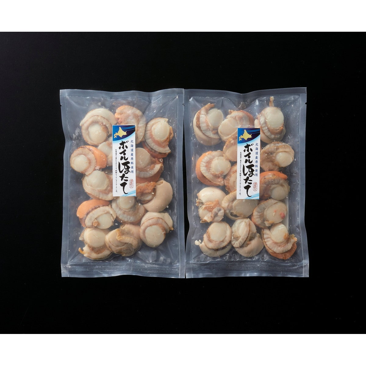 「ボイル帆立 生食用 500g×2」 北海道沖で獲れたほたてを新鮮なうちにボイルしました。バター焼きや酒蒸しなど様々な調理方法でお楽しみいただけます。