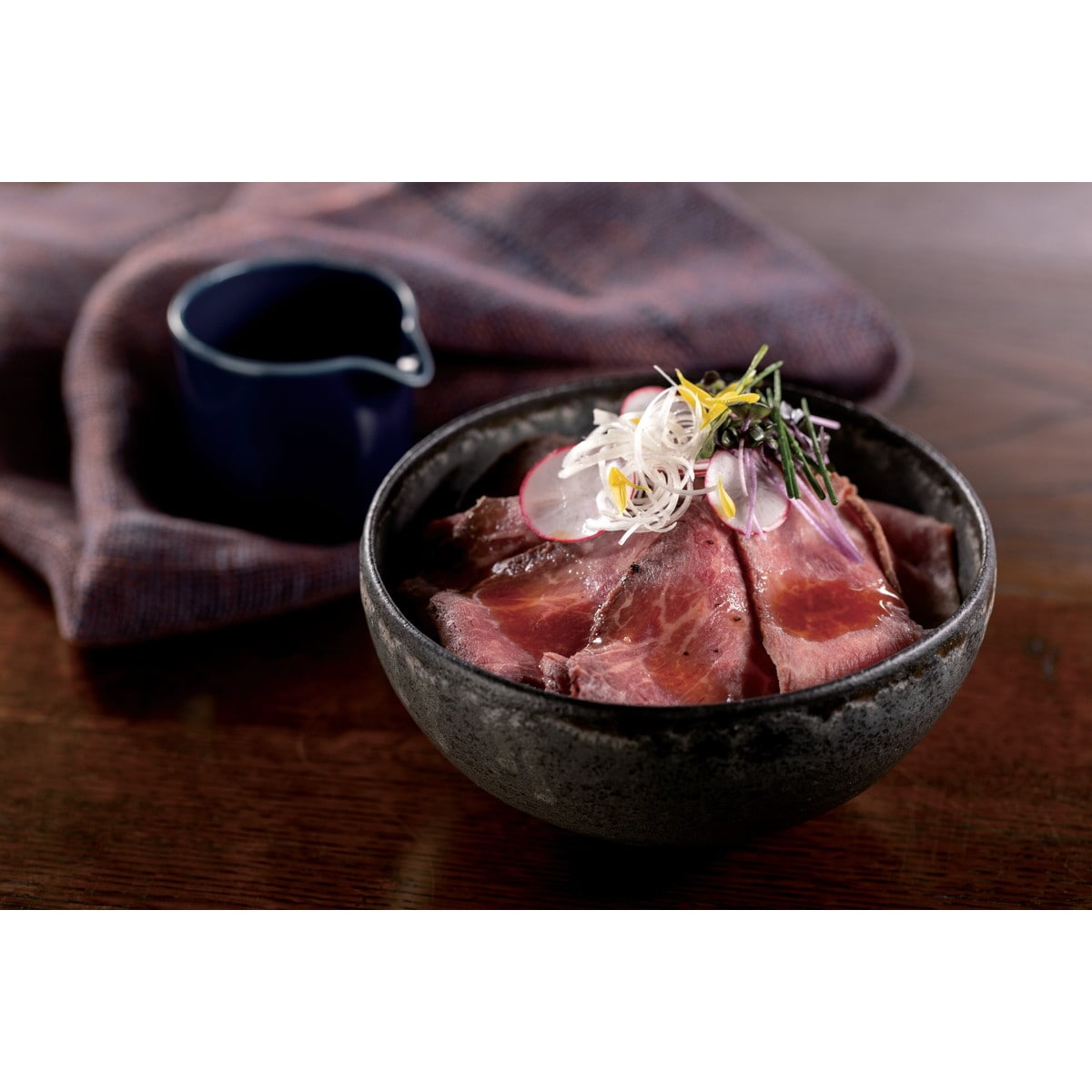 「黒毛和牛ローストビーフ丼の具」 黒毛和牛のローストビーフです。ご飯の上に盛り付けてお召し上がりください。
