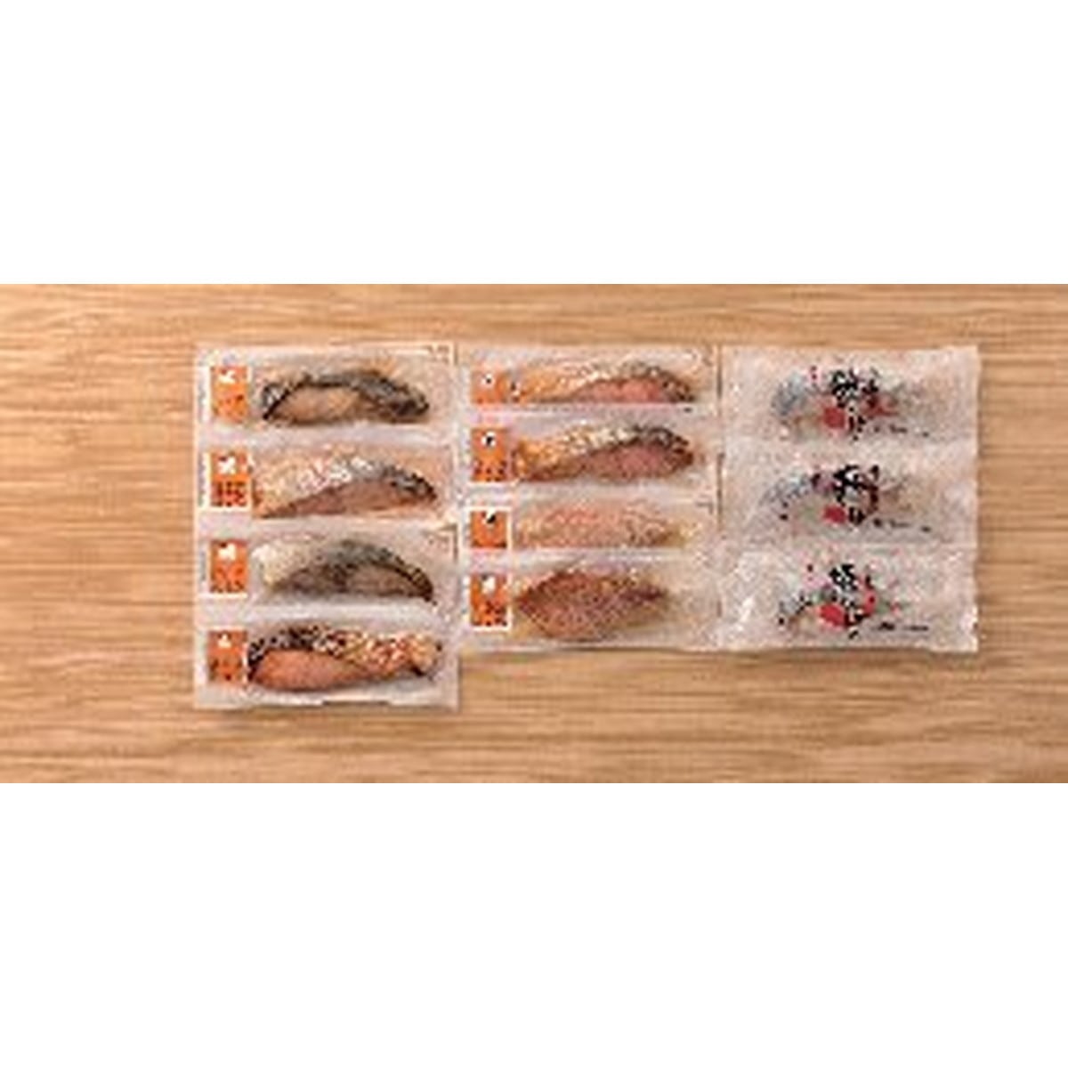 ●数量・内容:西京漬焼魚(紅鮭・赤魚各60g×2、ぶり・サーモントラウト・銀鱈・銀鮭各60g×1)、焼鮭60g×3
