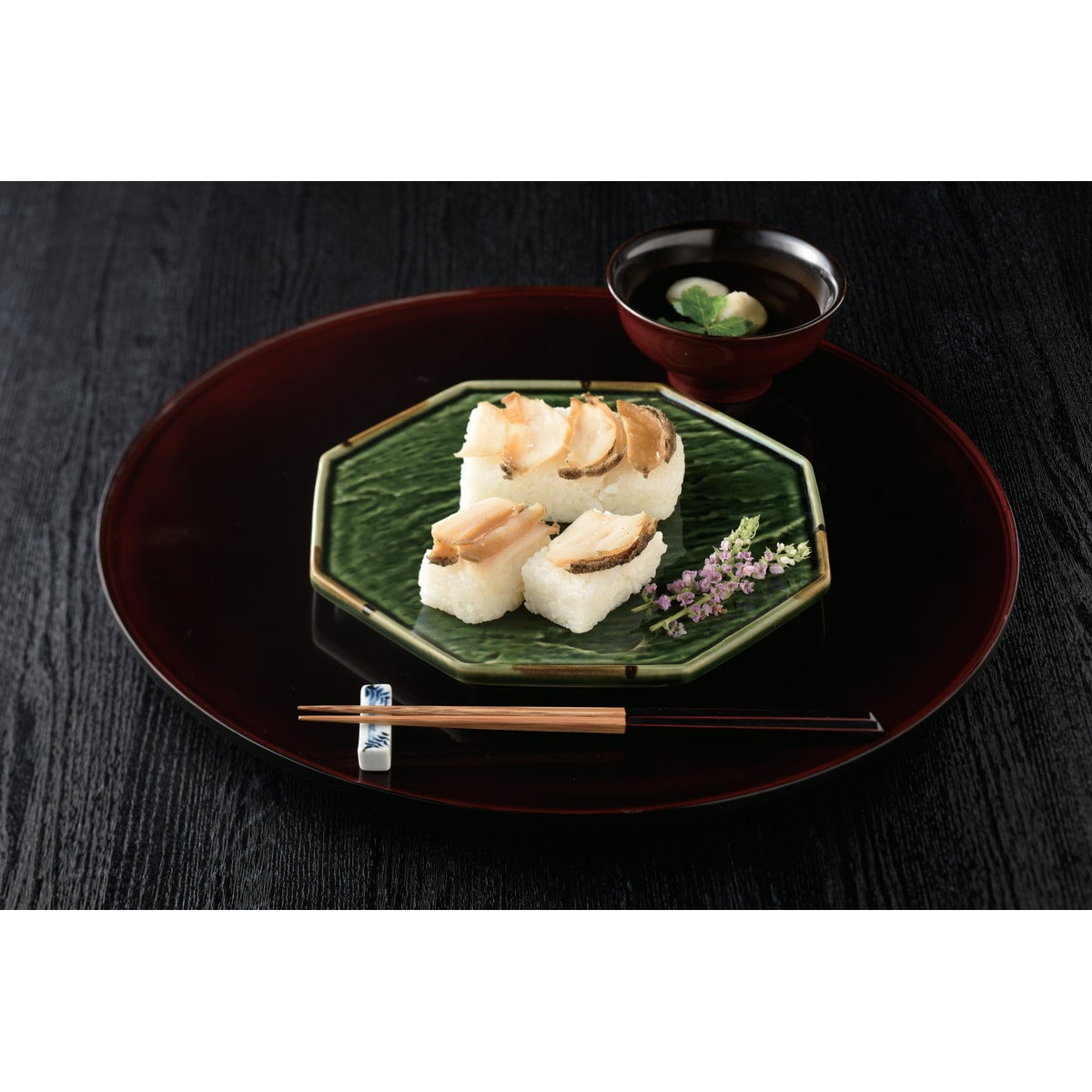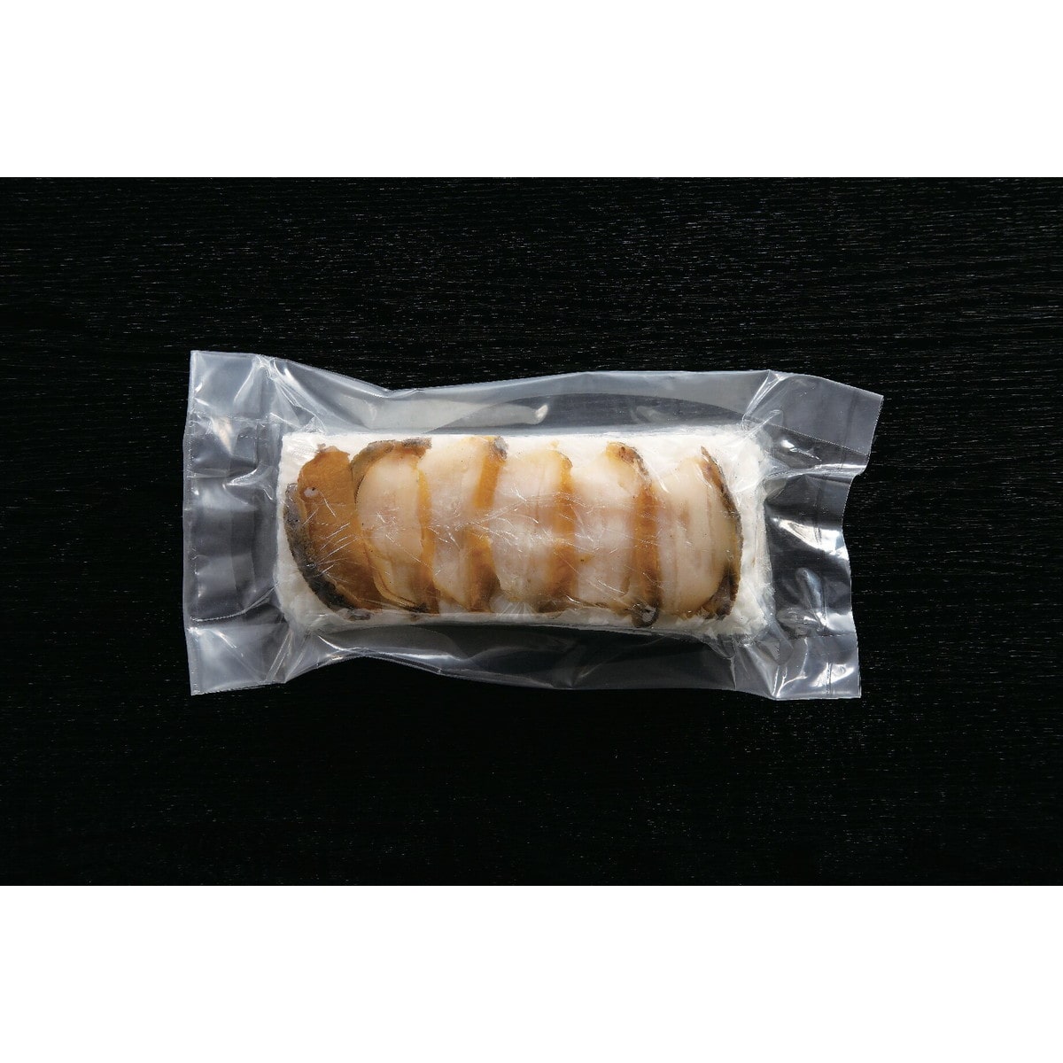「日本料理店の天然煮あわび棒寿司」 天然鮑を柔らかく炊き上げ贅沢に使っています。寿司飯との調和のとれた日本料理店ならではの棒寿司です。