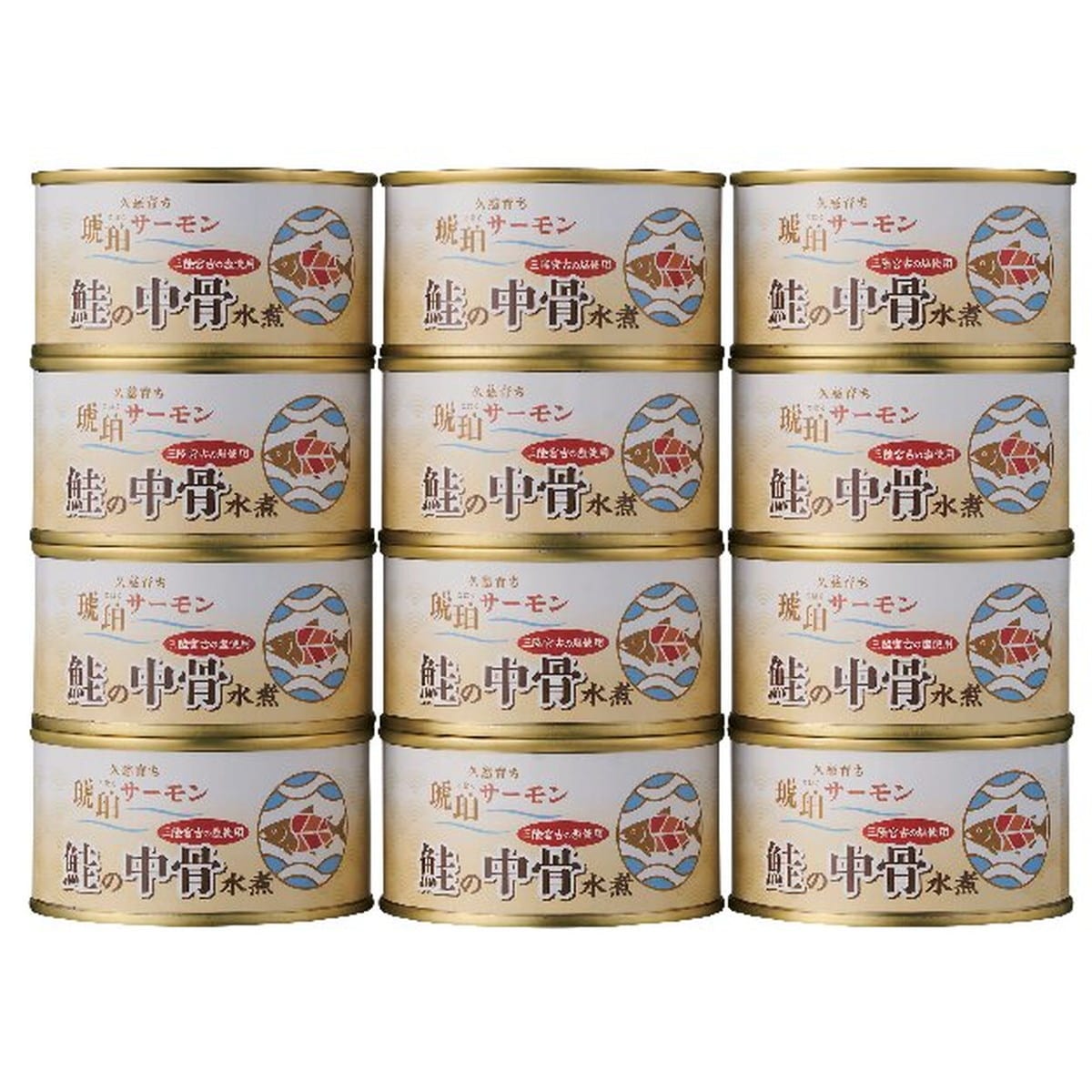「琥珀サーモン鮭の中骨水煮(久慈育ち) 180g×12」 岩手県のブランドサーモン「久慈育ち琥珀サーモン」の中骨を三陸宮古の塩を使用して水煮に仕上げました。優しい味付けの柔らかい鮭の身をご堪能いただけます。