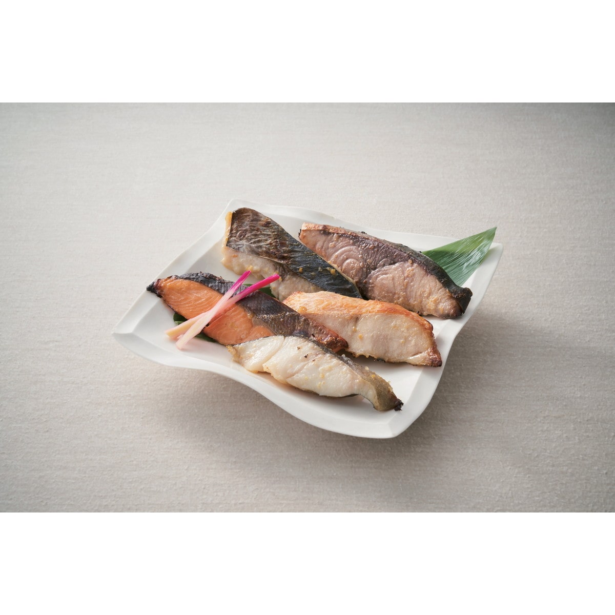 ●数量・内容:サーモン味噌漬・さわら味噌漬・銀だら味噌漬・金目鯛味噌漬・ぶり味噌漬各60g×2