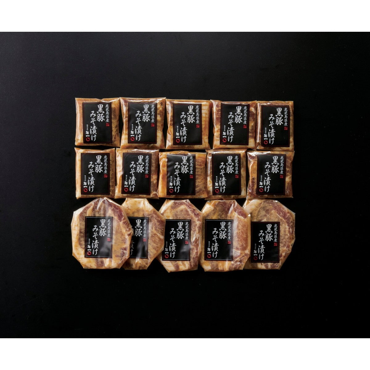 「鹿児島県産黒豚味噌漬詰合せ モモ10ロース5」 鹿児島県産黒豚の味噌漬けです。黒豚特有の歯切れの良さ、豊かな風味を味わえます。