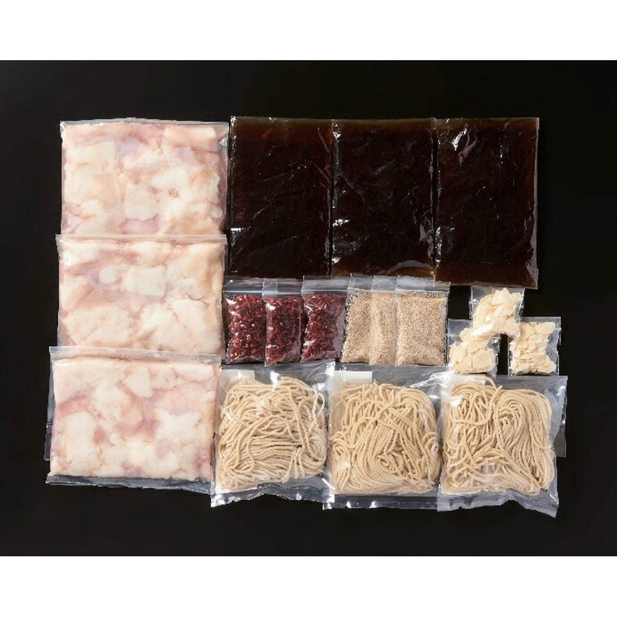 ●数量・内容:もつ鍋セット(和牛もつ200g、もつ鍋スープ135g、薬味(ガーリックスライス・輪切り唐辛子・白ごま各5g)、ちゃんぽん生麺90g)×各3