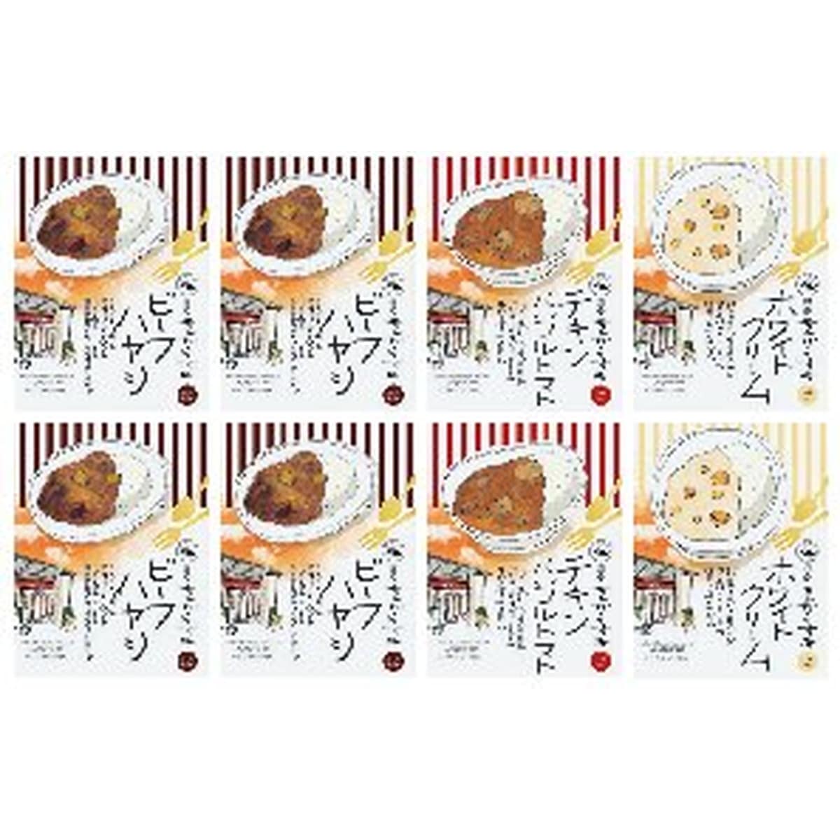 ●数量・内容:ビーフハヤシ200g×4、チキンバジルトマト・ホワイトクリーム各200g×2