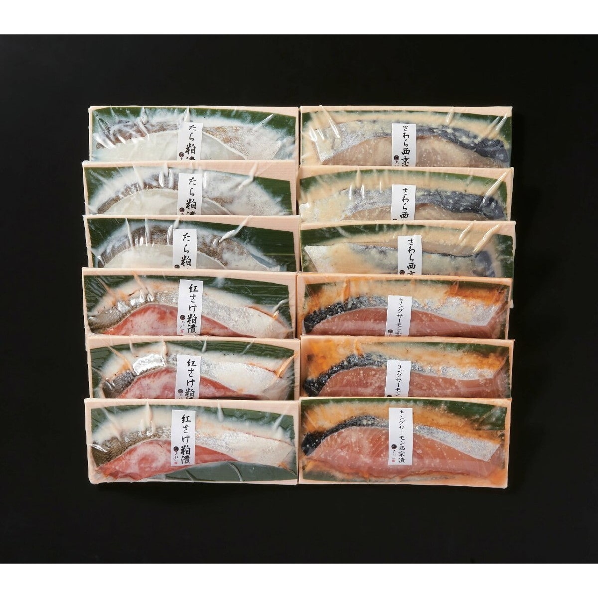「漬魚詰合せ サワラ・サケ・サーモン・タラ×各3」 海産物問屋『オオハシ商店』が選んだ人気の詰合わせ。信州味噌と吟醸酒の酒粕で漬け込みました。