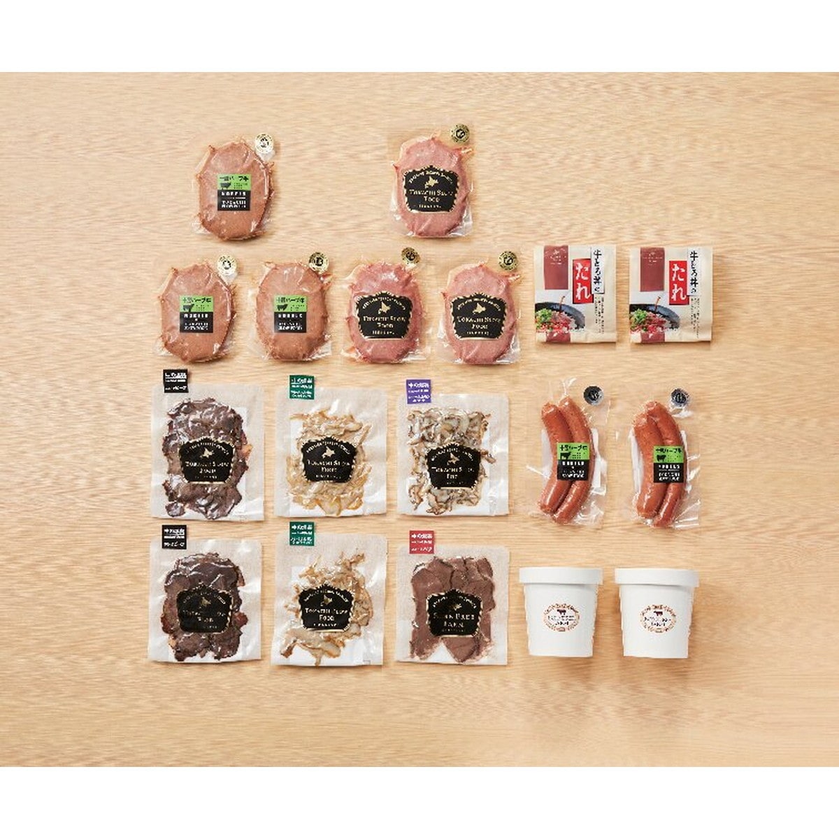 ●数量・内容:牛とろフレーク180g×2、牛とろ丼のたれ(20g×5)×2、牛とろプレミアムハンバーグ・まるトマハンバーグ各150g×3、まるトマソーセージ120g×2、牛の燻製(スモークビーフ50g×2、スモークホルモンシロ35g×2、スモークハツ・スモークホルモンギアラ各35g)