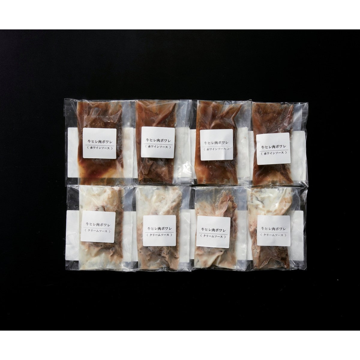 ●数量・内容:牛ヒレ肉ポワレの赤ワインソース105g・牛ヒレ肉ポワレのクリームソース120g×各4
