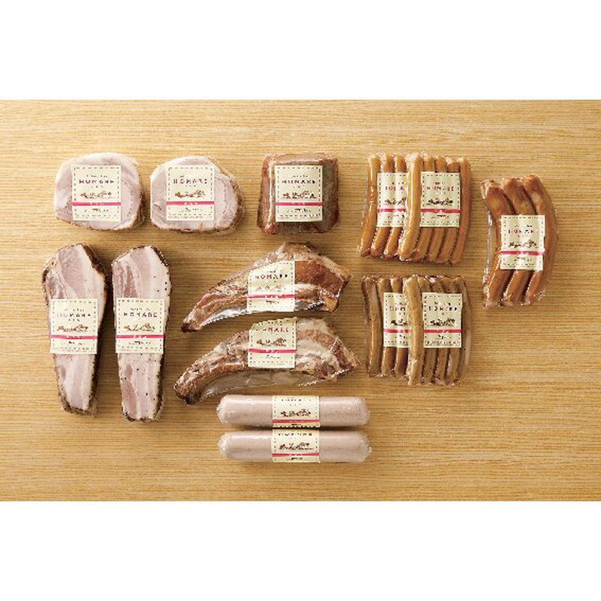 ●数量・内容:ロースハムブロック300g×2、ベーコンブロック330g×2、燻製スペアリブ200g×2、フランク(3本入り)160g、ボロニアソーセージ160g×2、プレーンウインナー(5本入り)110g×2、黒胡椒ウインナー(5本入り)110g×2、黒毛和牛ローストビーフ250g