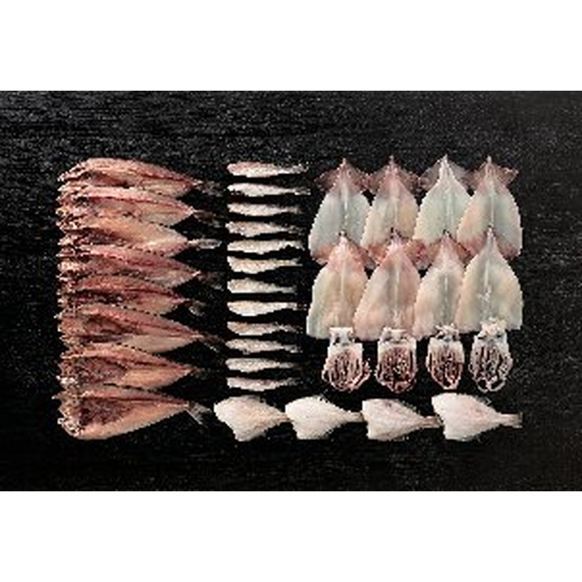 ●数量・内容:いか一夜干し(2枚入)・ほっけ開き(2枚入)×各4、宗八かれい一夜干し(2枚入)・こまい一夜干し(6尾入)×各2