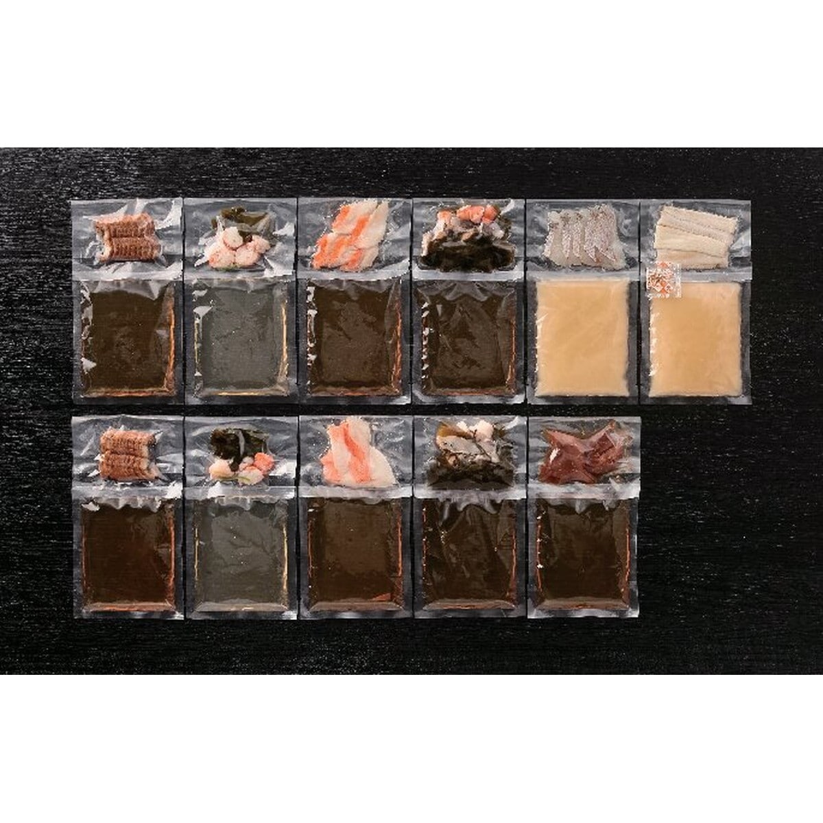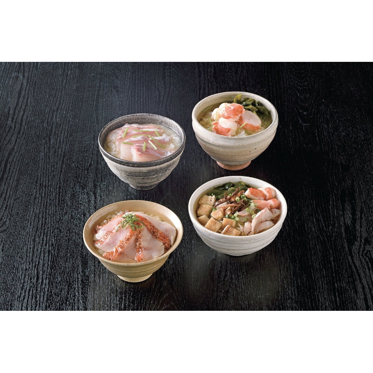●数量・内容:鰻鰹だし仕立て(うなぎ20g、出汁180g)×2、伊勢海老スープわかめ仕立て(伊勢海老25g(湯通しわかめ・みつば入)、出汁180g)×2、炙り金目鯛茶漬け醤油仕立て(炙り金目鯛30g、出汁180g)×2、海鮮茶漬け鰹だし仕立て(鱧照焼き・えびむき身・鯛・湯通しひじき・湯通しわかめ計30g、出汁180g)×2、鳴門鯛白みそ仕立て(鯛30g、出汁180g)、太刀魚胡麻風味仕立て(太刀魚15g、出汁180g、ごま)、鰹醤油仕立て(鰹30g、出汁180g)