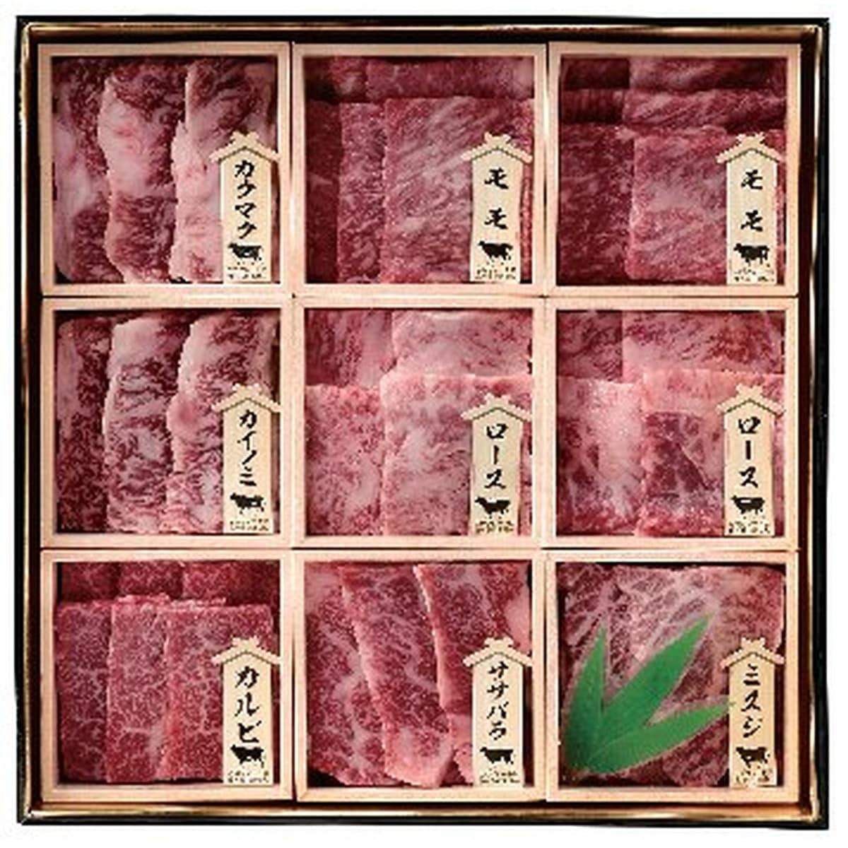 「黒毛和牛焼肉用詰合せ御膳 希少80×5/80×4」 料理店さながらに鹿児島県産黒毛和牛のバラエティー豊かな美味しさが楽しめる贅沢なセットです。会席にも映える御膳箱でお届けしています。
