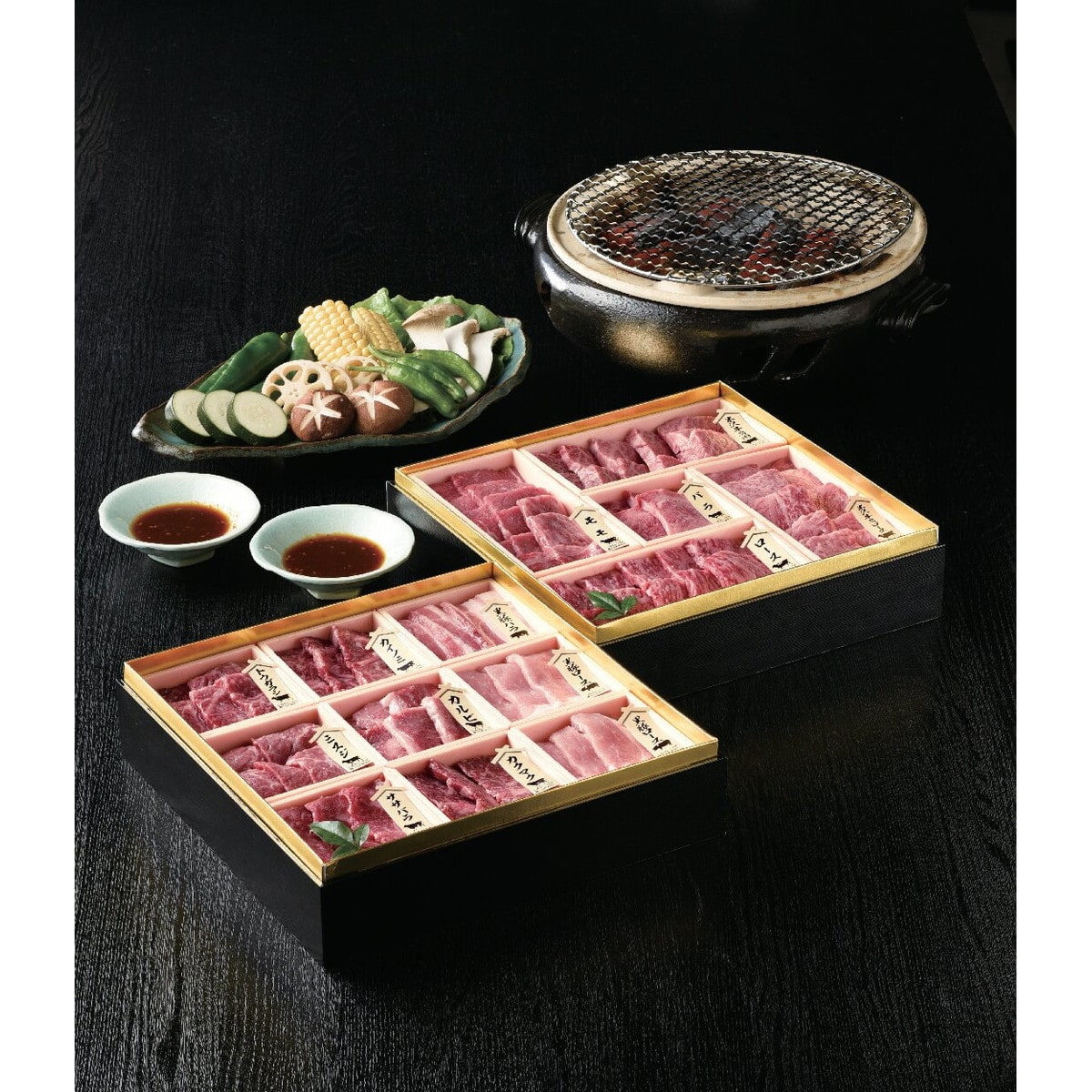 「米沢牛・黒毛和牛・黒豚 焼肉用 詰合せ御膳」 ※写真は一例です。希少部位のご指定はできません。