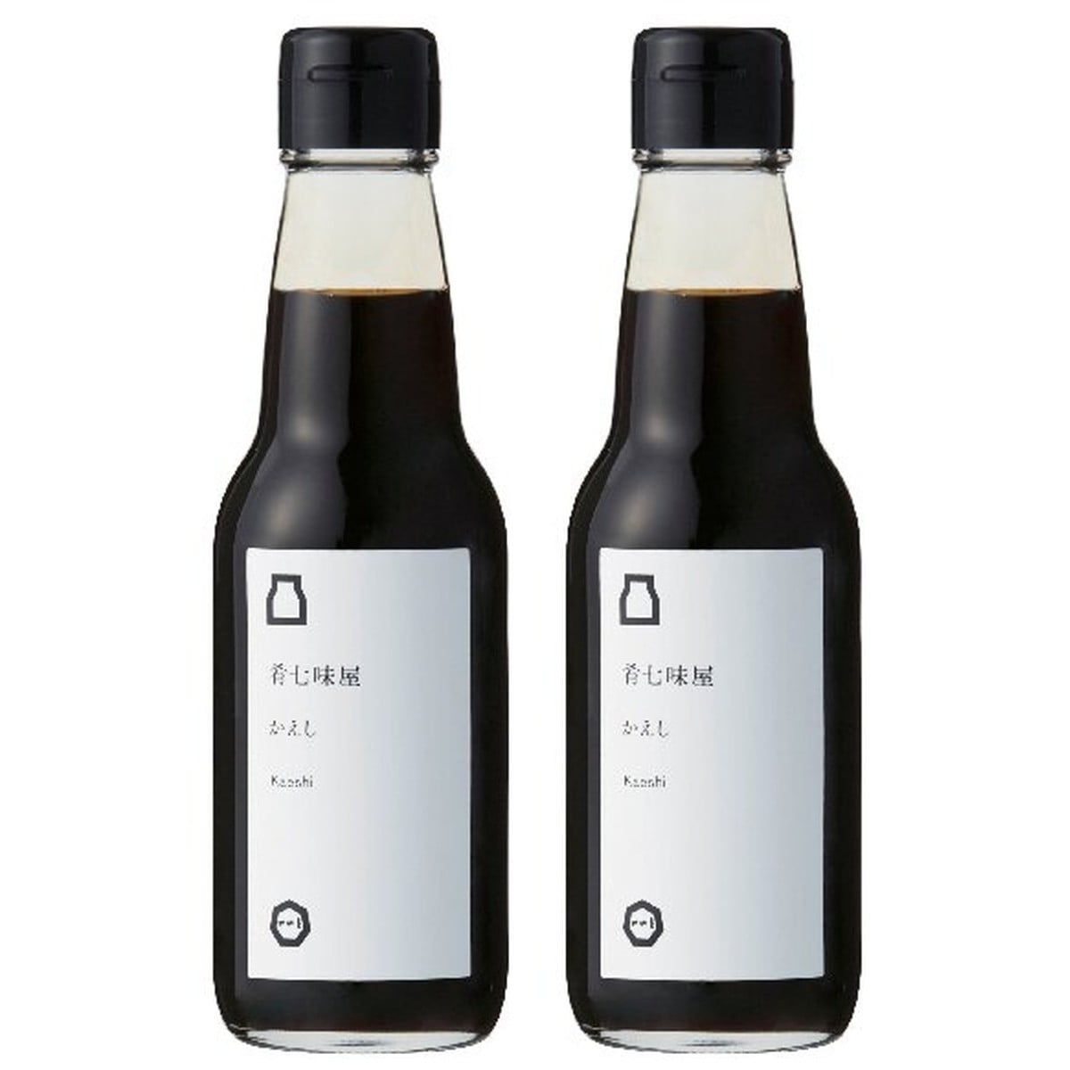 「<肴七味屋>かえし」 「かえし」は、醤油・本みりん・砂糖を合わせた調味料です。だし汁と合わせることで簡単にそばつゆが作れます。焼肉のたれ、鍋物の割り下、煮魚など和食の調味料としてもお使いいただけます。