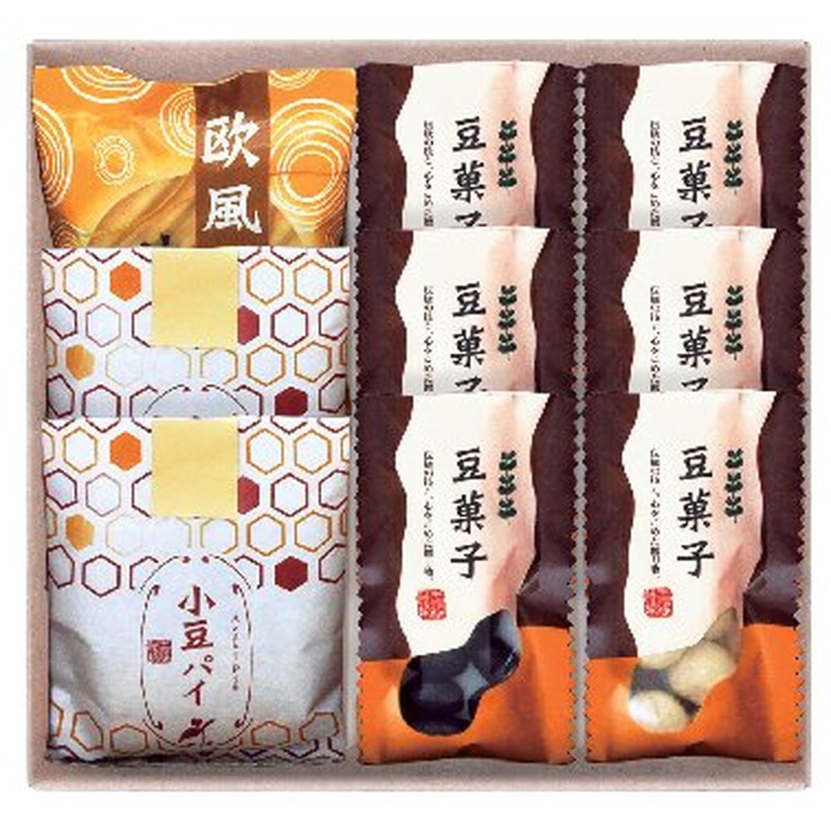 「小豆パイ・欧風せんべい和菓子詰合せ」 小豆パイ、欧風せんべい、2種類のコーティングした豆菓子の詰合わせです。
