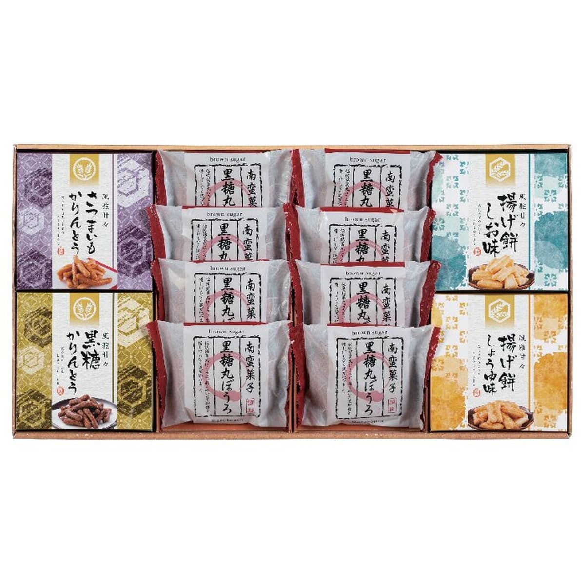 「風雅甘々 和菓子詰合せ」 粗く砕いた黒砂糖を練り込んだ黒糖丸ぼうろや、国産のもち米を使用し、米油とごま油をブレンドした油で揚げた揚げ餅などの和菓子詰合わせです。