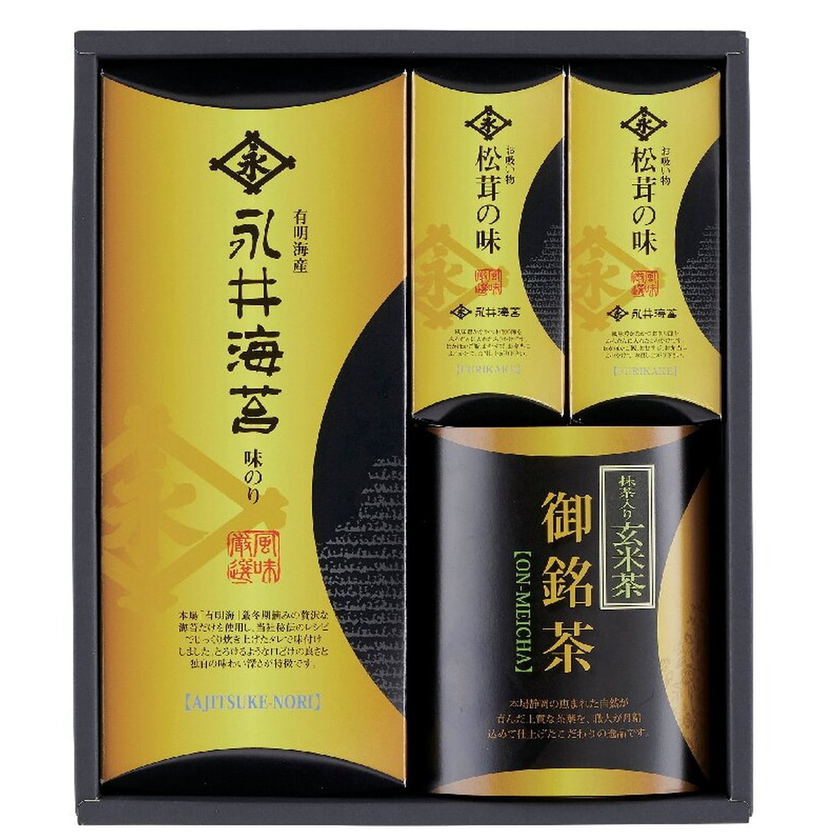 「永井海苔 味付け海苔と彩り詰合せ」 永井海苔の味付け海苔のアソートセット。食卓に便利な食材をあつめた彩りギフトです。