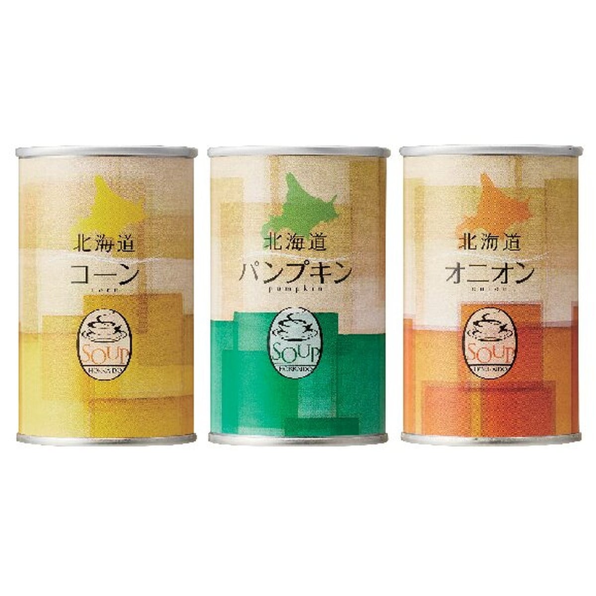 「北海道のスープセット」 コーンスープ、パンプキンスープは北海道産のとうもろこし<br>とかぼちゃに牛乳、生クリームを加えた贅沢なスープです。<br>オニオンスープは北海道産玉ねぎをじっくり炒め、ビーフブ<br>イヨンとチキンブイヨンで長時間煮込んだフレンチタイプの<br>スープ。温めるだけでいつでも同じ美味しさが味わえるスト<br>レートタイプ。できるだけ素材の素直な味わいを大切にしま<br>した。