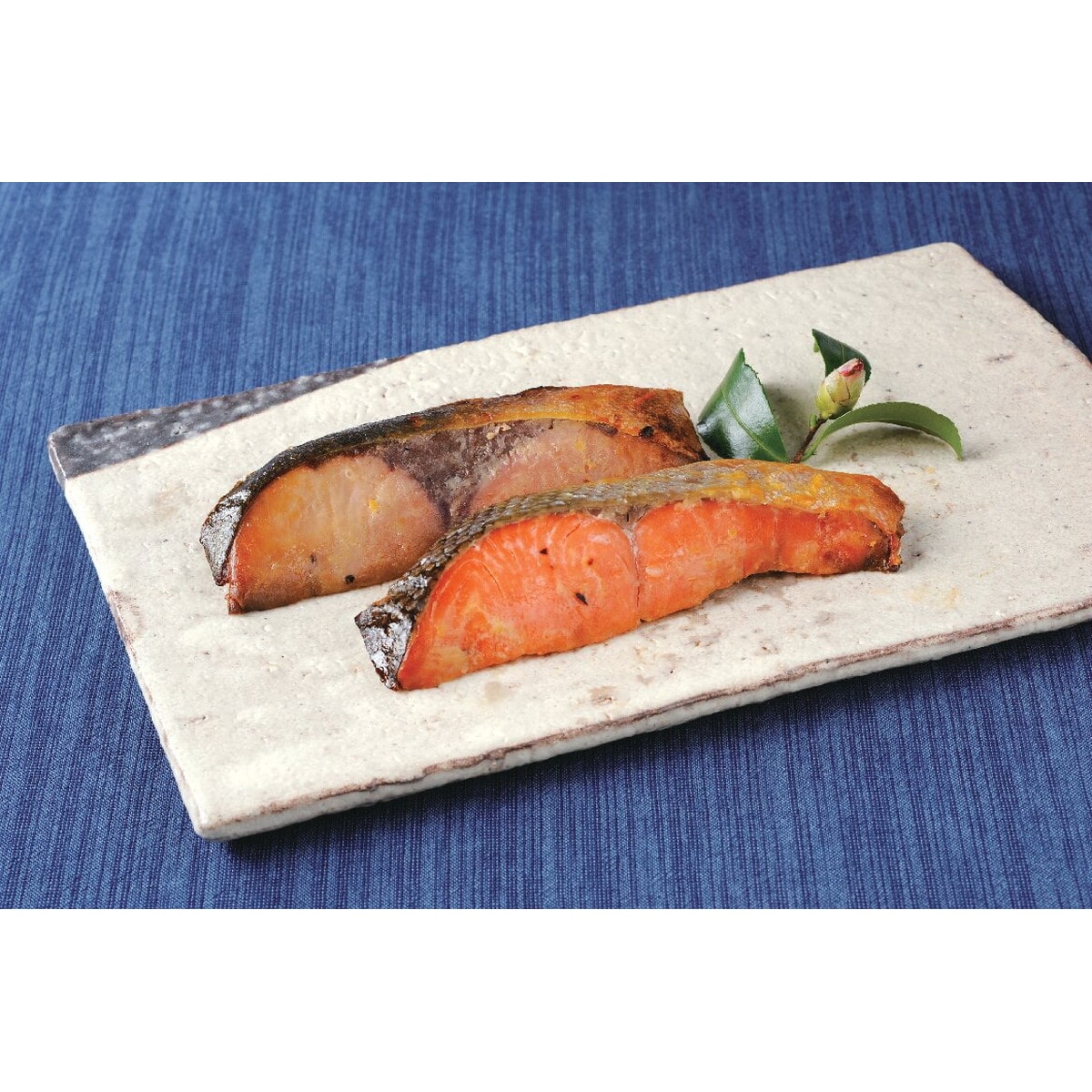 「<北海道・山大>西京漬焼魚・焼鮭食べ比べ」 風味豊かな京都の荒こし味噌を使った西京漬と甘塩味に仕上げた焼鮭を詰合わせた魚惣菜です。
