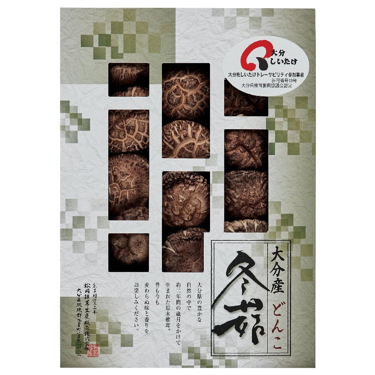 「大分産椎茸どんこ」 大分県の豊かな自然の中で約2年の歳月をかけて生まれた原木椎茸。昔も今も変わらぬ味と香りをお楽しみください。