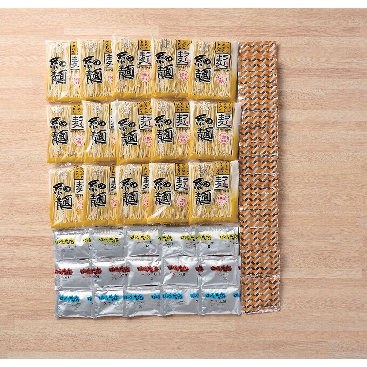 ●数量・内容:ラー麦麺80g×15、豚骨スープ・醤油スープ・味噌スープ各35g×5、ラーメンふりかけ3g×15