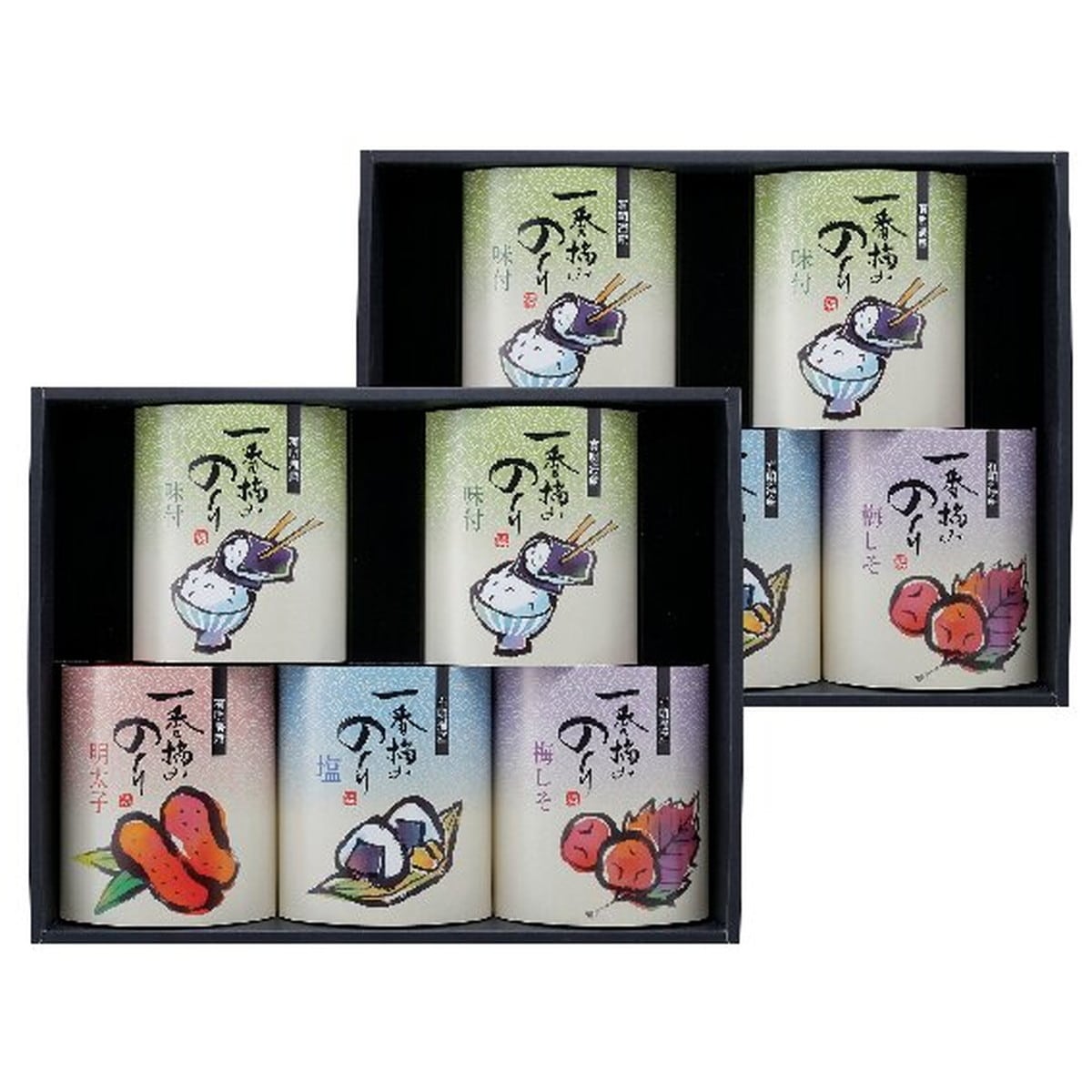 「一番摘み有明海産海苔」 柔らかく風味豊かでパリッとした食感と口どけの良さが特徴の一番摘み海苔。味付、梅しそ、しお、明太子の4種類の味を詰合わせました。