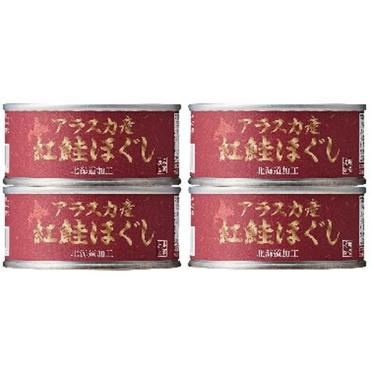 「アラスカ産 紅鮭ほぐし缶詰」 脂ののったアラスカ産紅鮭を調理し骨や皮を取りのぞいて丁寧に手ほぐしした缶詰。ほんのり塩味が紅鮭の旨みを引き立てています。