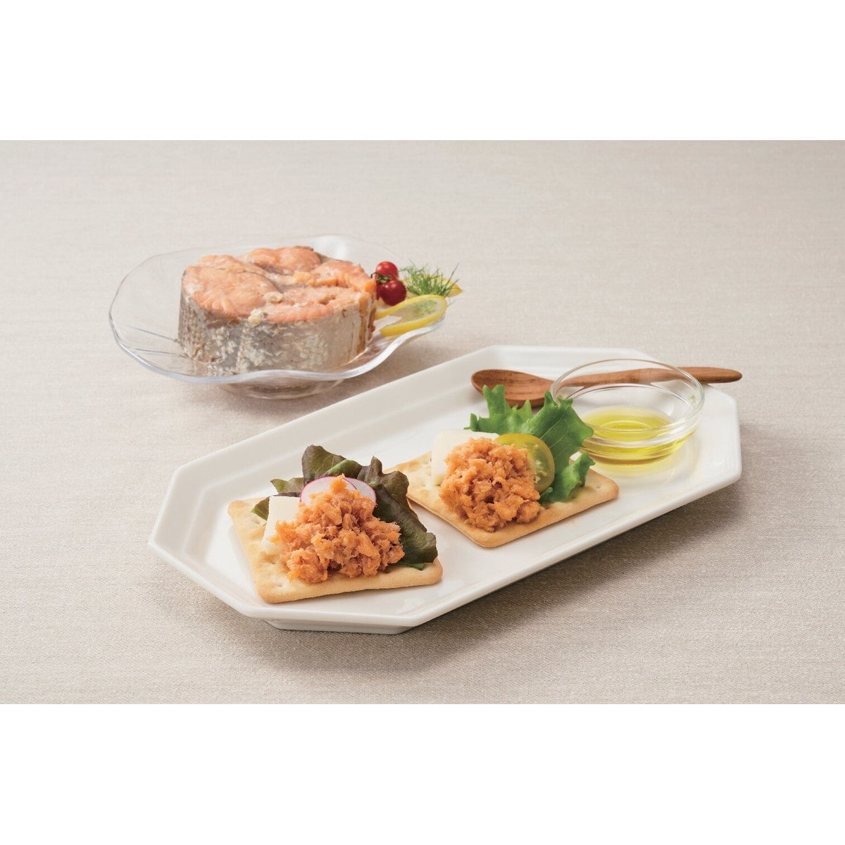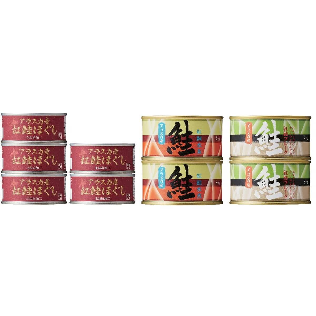 ●数量・内容:アラスカ産紅鮭ほぐし90g×5、アラスカ産紅鮭水煮180g×2、アラスカ産紅鮭フレークエキストラバージンオリーブオイル仕込180g×2