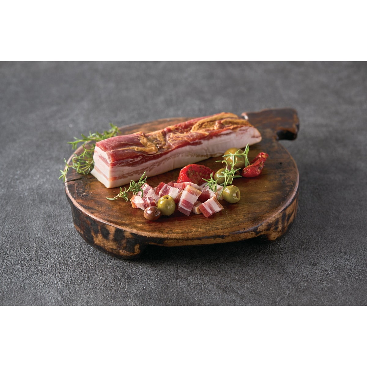 「鹿児島県産黒豚パンチェッタ(生ベーコン)ブロック」 世界的に権威のある国際食肉コンテスト「IFFA」「SUFFA」のメダリスト工房で作った職人技のなせる味わいです。黒豚の生ベーコンをご体験あれ。